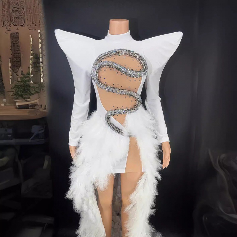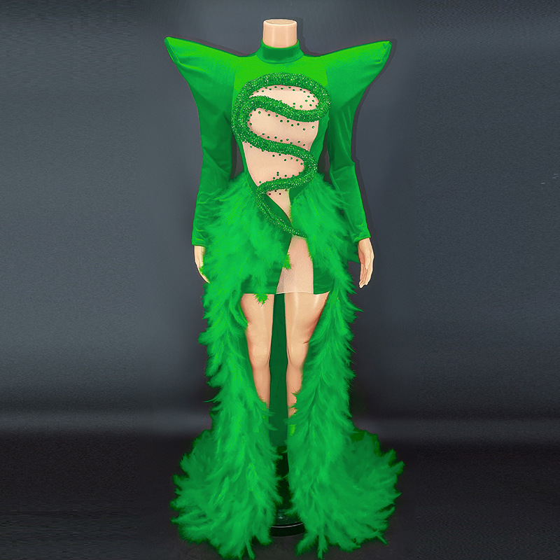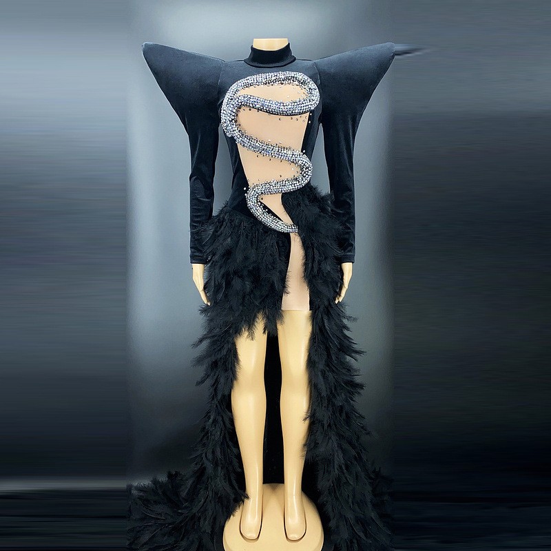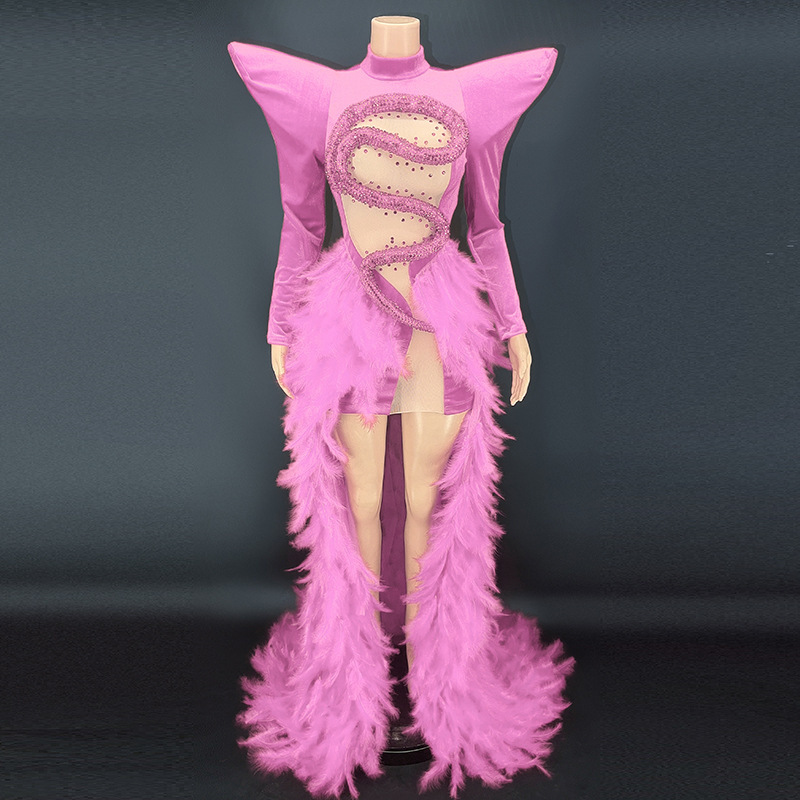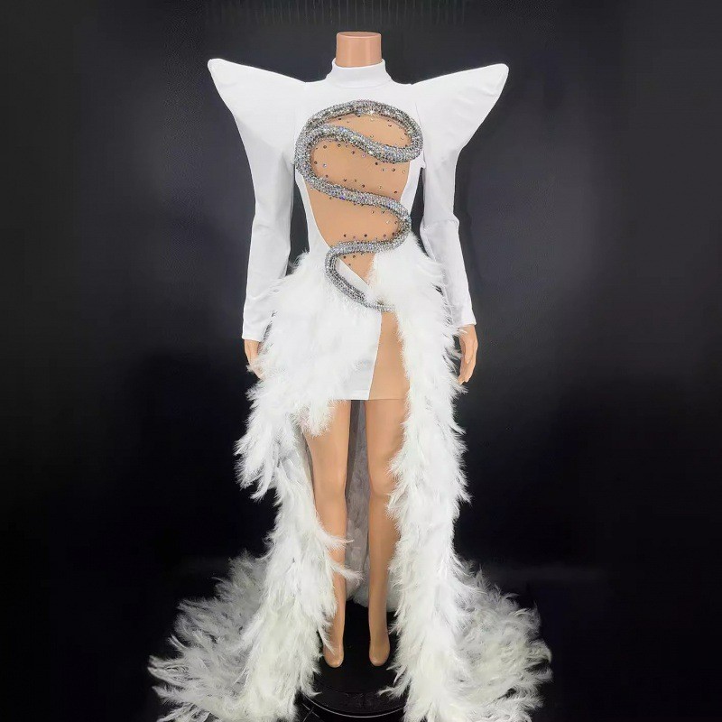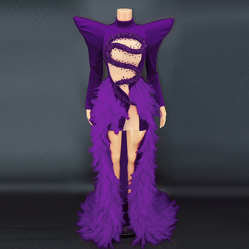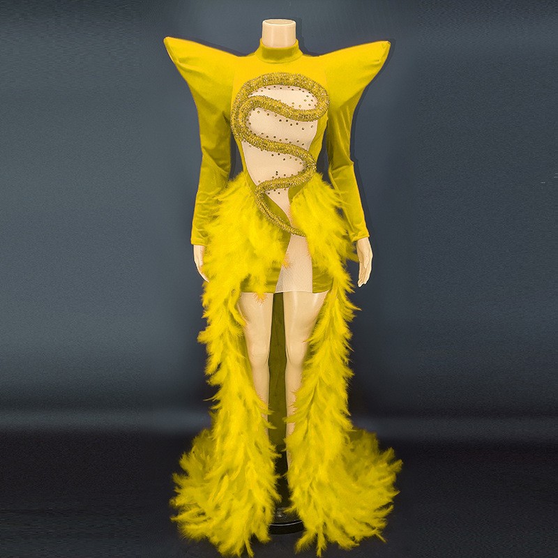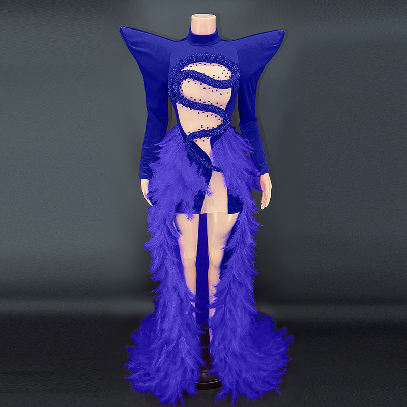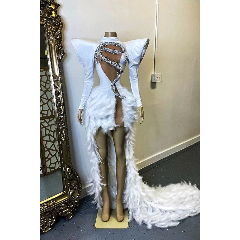 Birthday dress boutique supplier rhinestone feather dress party stage costume vestibule evening dress