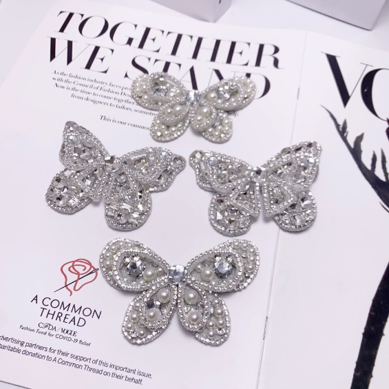 White Full Diamond Bow Pearl Non-woven Double-layer Shoe Flower Decoration Clothing Accessories Bag Accessories