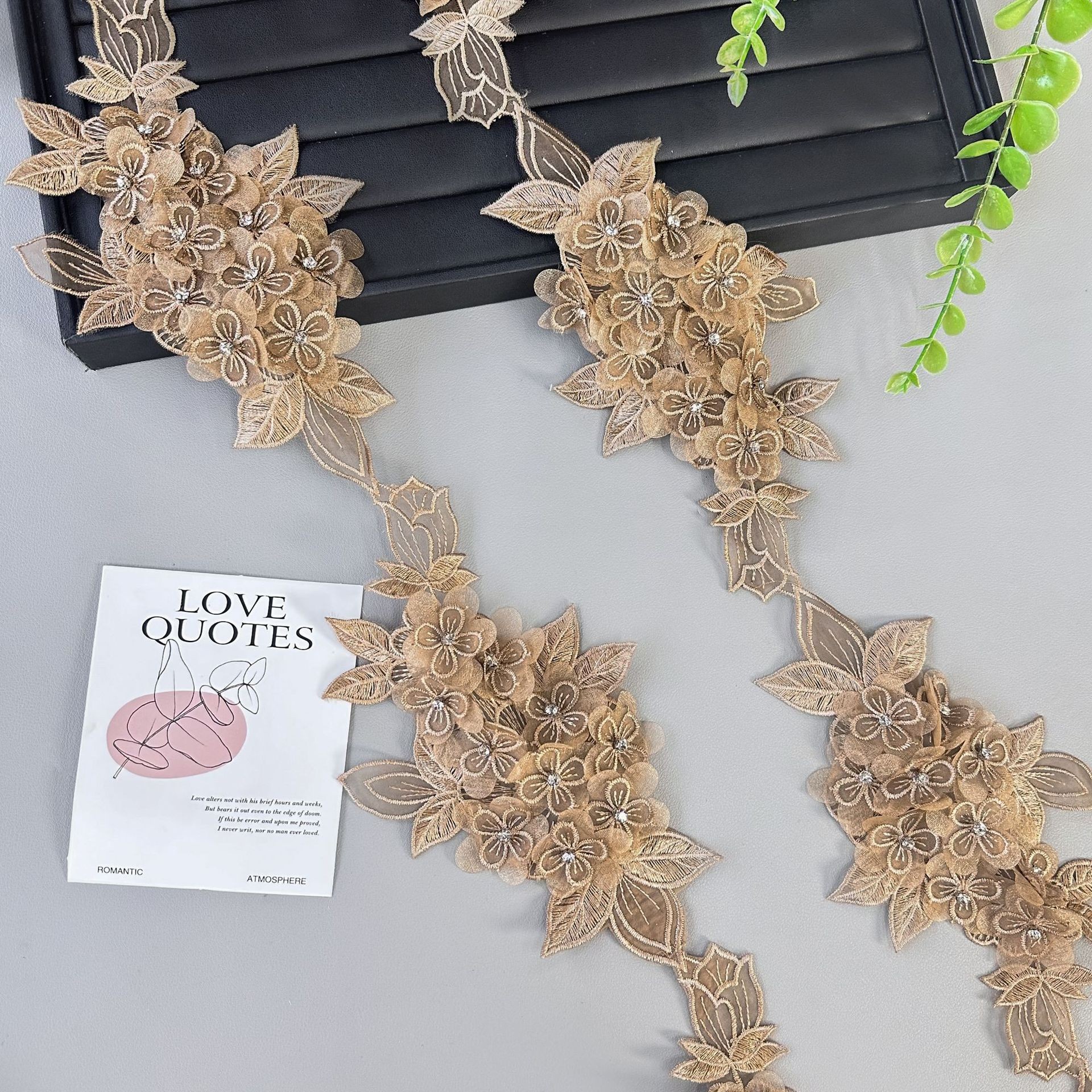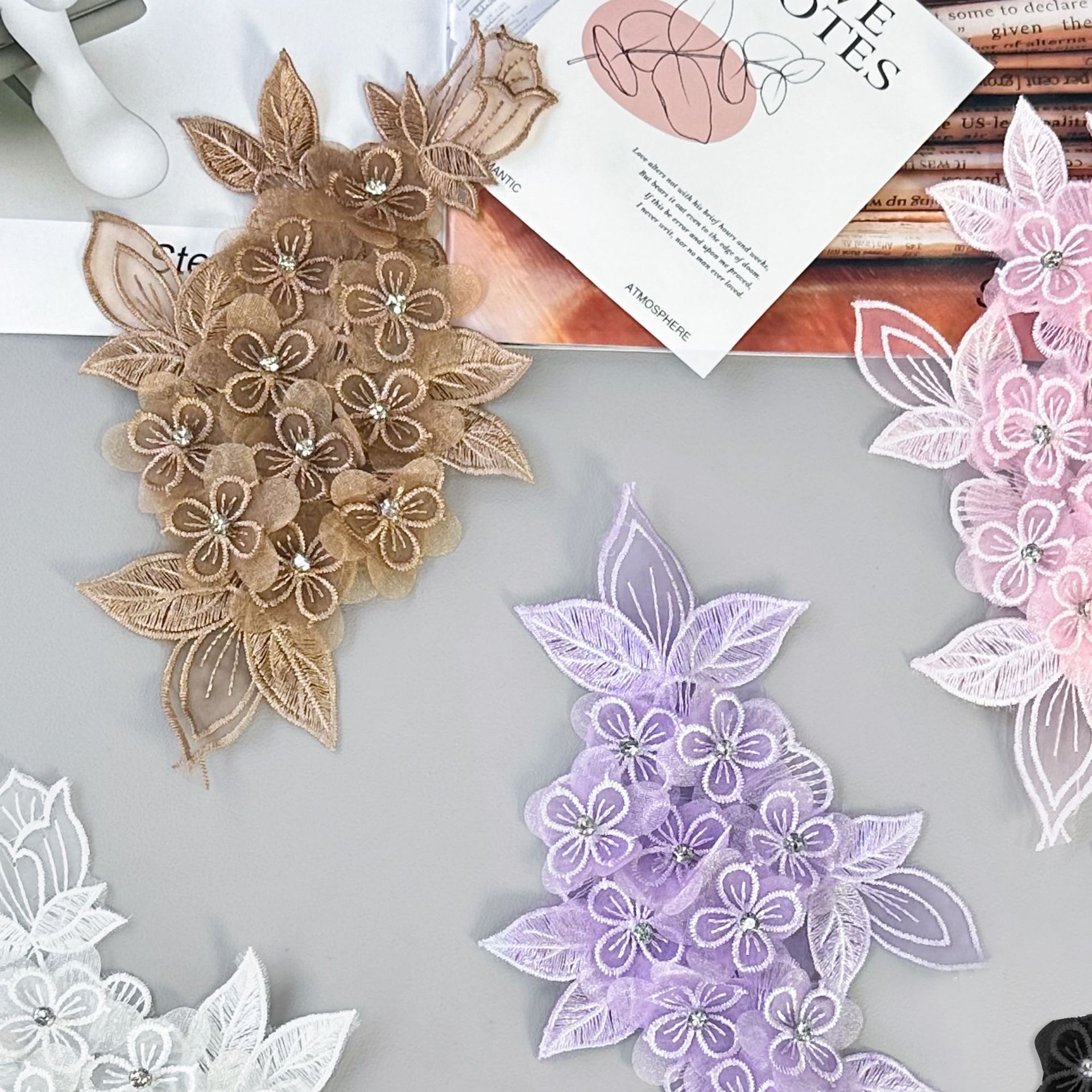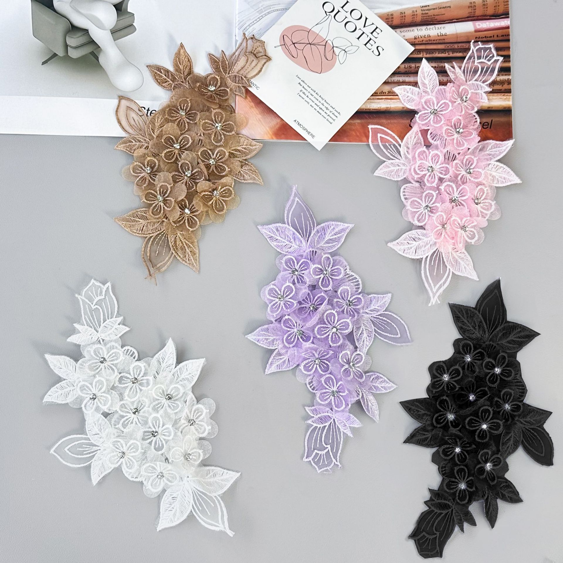 Stereo Children's Clothing Women's Dress Sweater Shirt Decorative Floral Mesh Yarn Embroidery Hand Sewing Nails Beads Lace