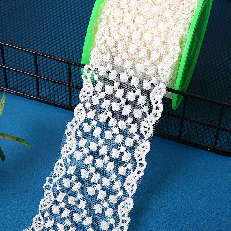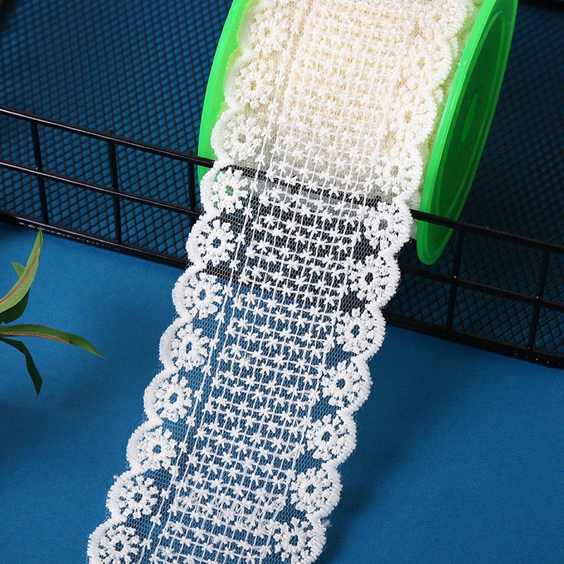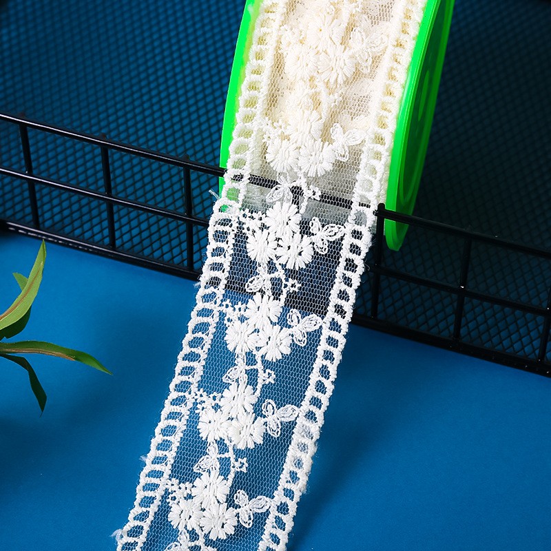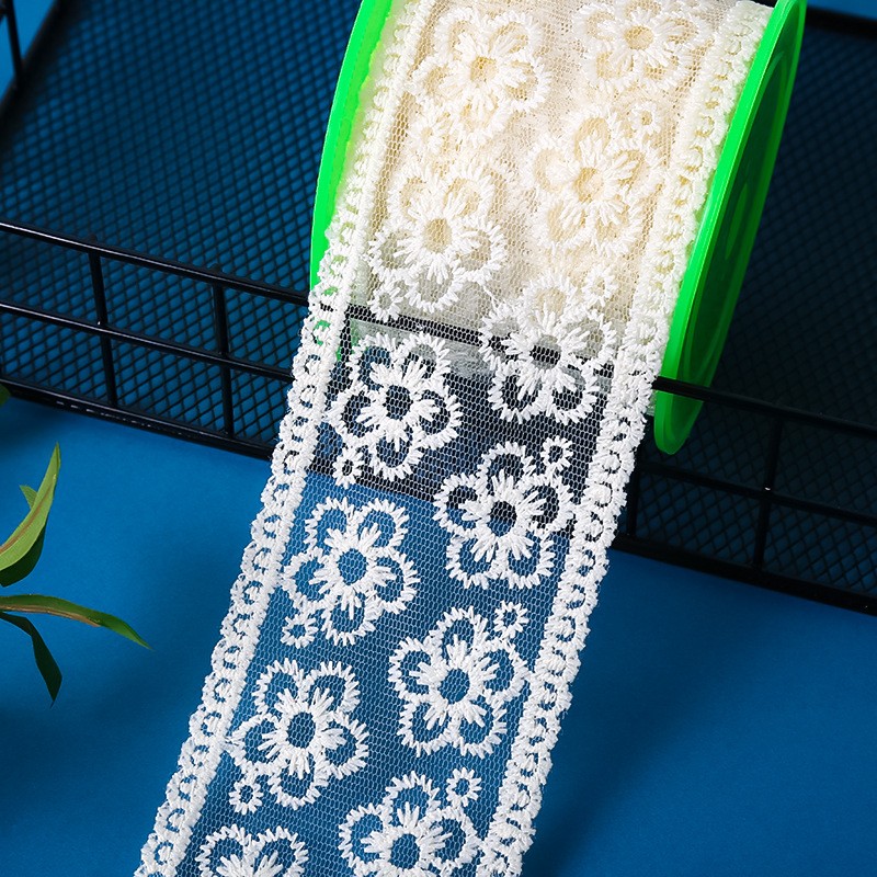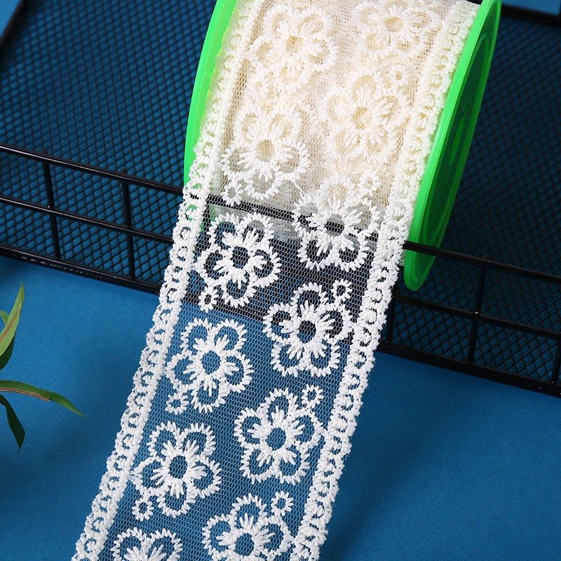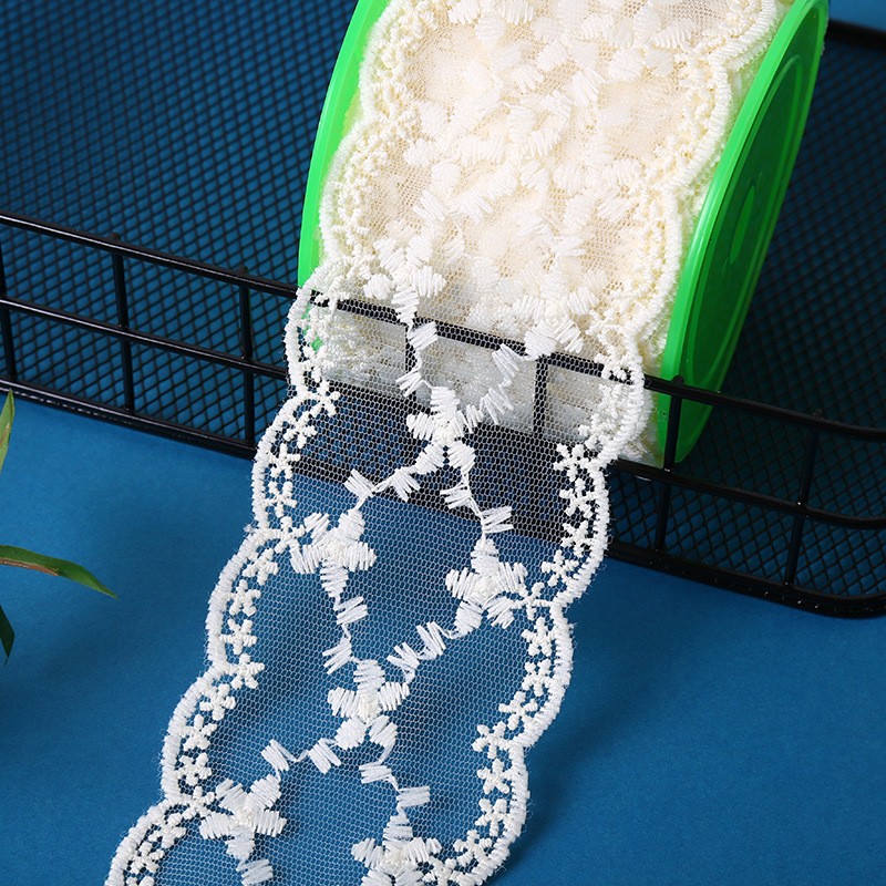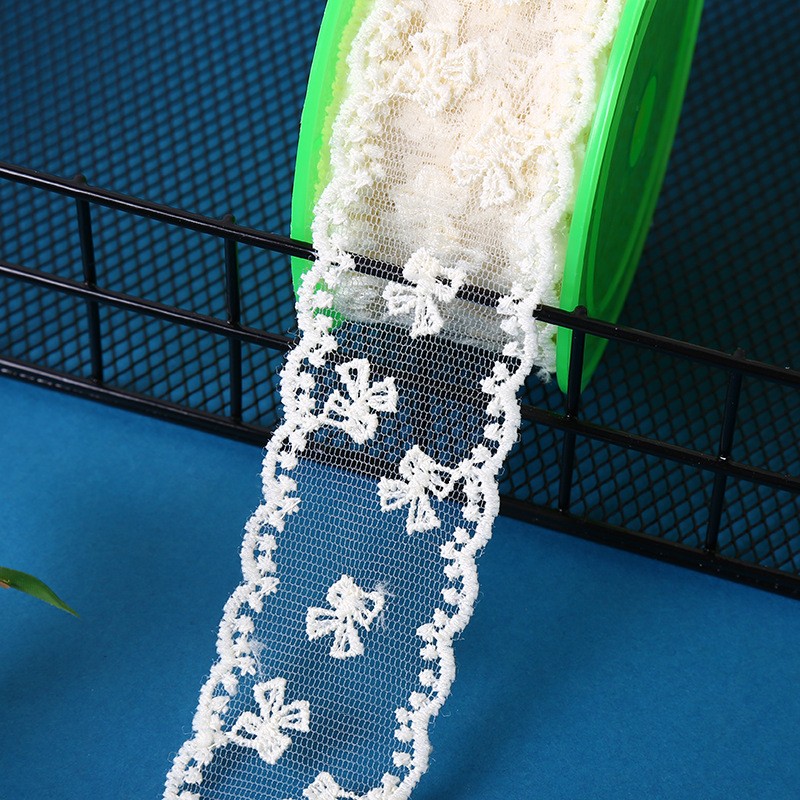 Beige Milk Silk Embroidery Lace Double Lace Hairpin Headband Accessories Bow DIY Clothing Home Textile Lace