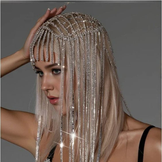 Mesh Long Tassel Rhinestone Hair Chain Hair Accessories All-match Personality Trend Full Diamond Headdress Bridal Accessories