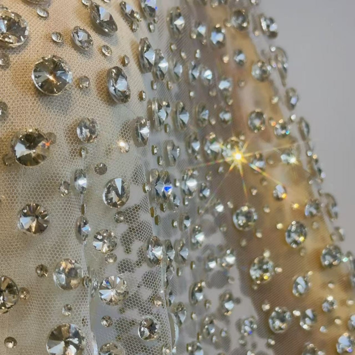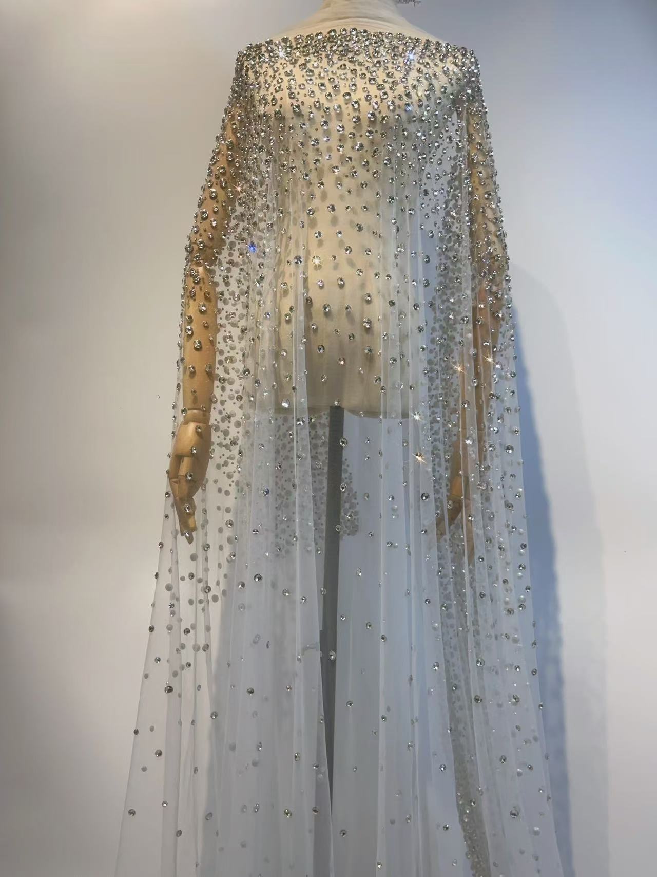 Mesh Handmade High-end Designer Hot Diamond Flash Cloth Dress Dress Wedding Dress Fabric Lace Fabric