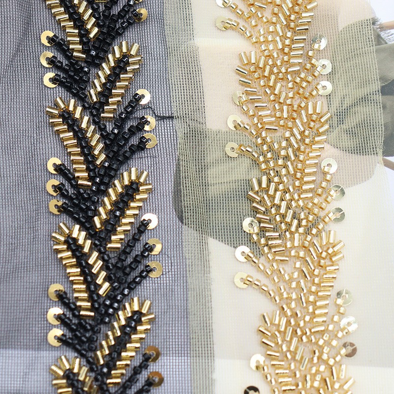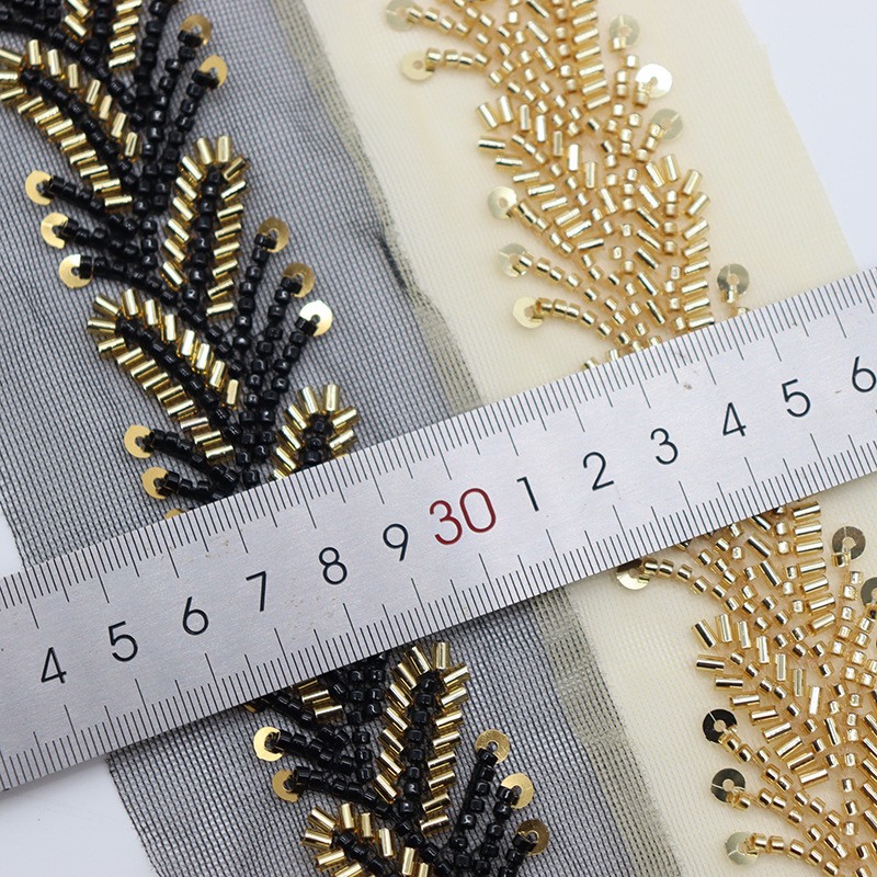 Lace Mesh Exquisite Machine Embroidery Ribbon Rice Beads Sequins Leaf Lace DIY Clothing Edge Cuffs Decorative Accessories
