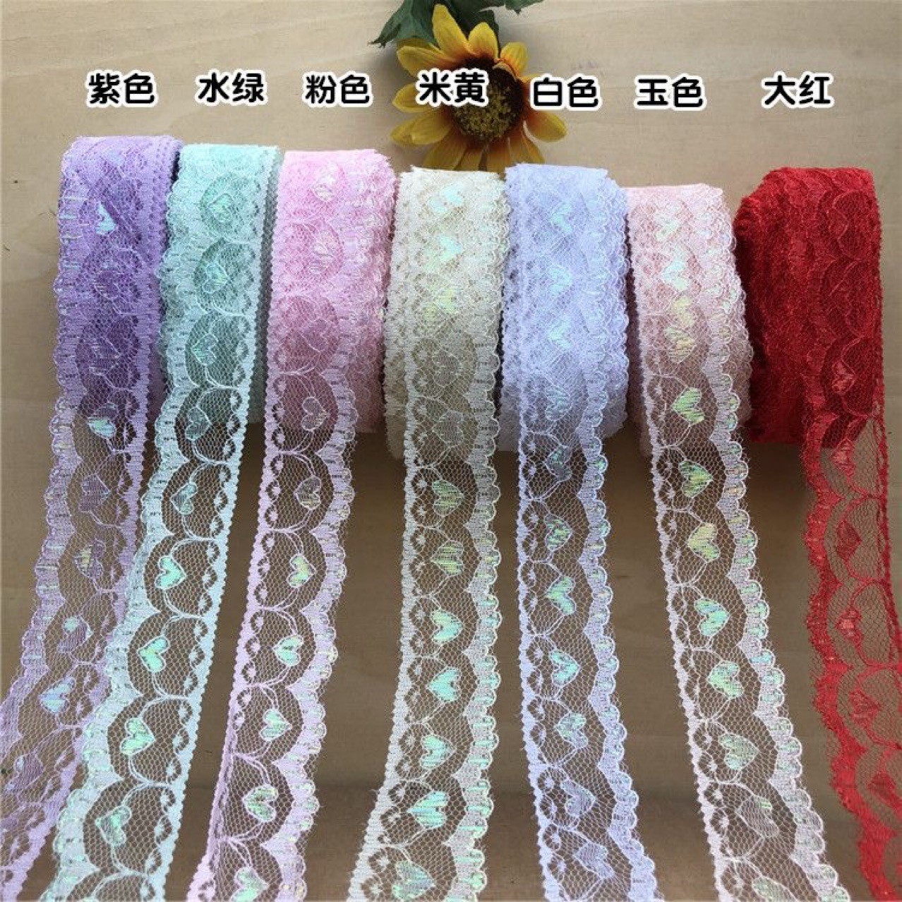 Lace trim, 3cm wide, colorful shimmering thread, DIY handmade mosquito net lace, tablecloth, curtain, clothing lace.