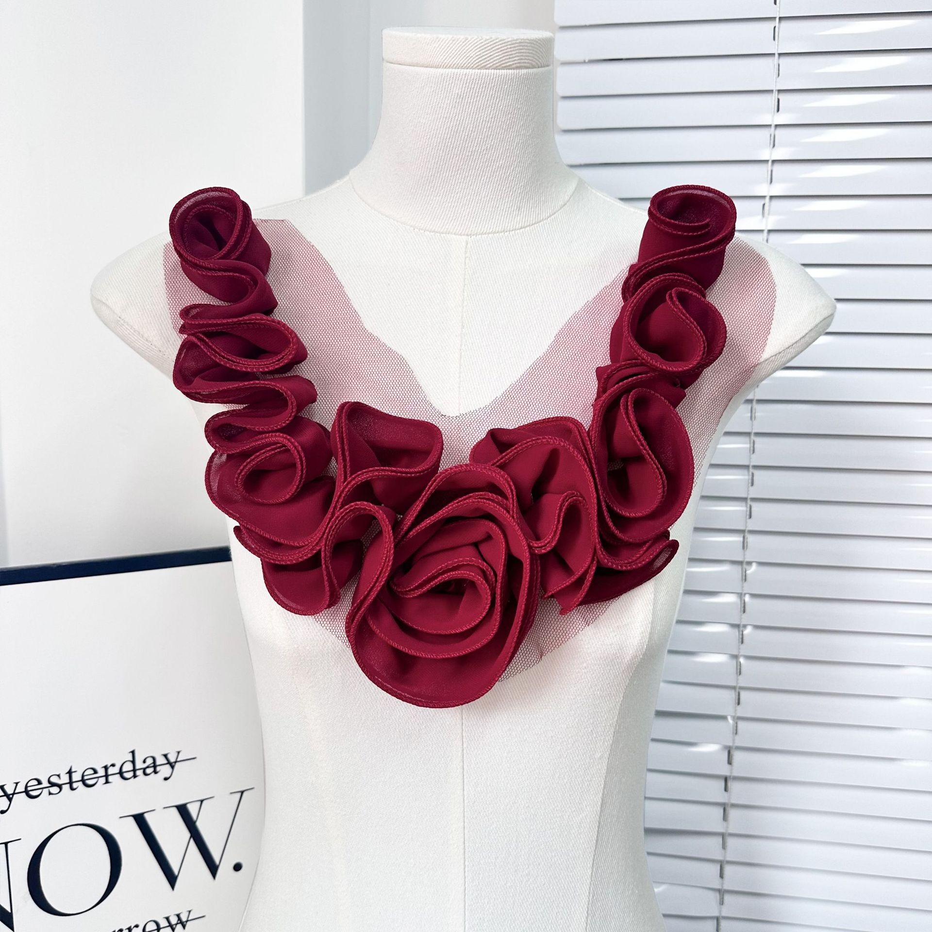 Lace chiffon three-dimensional pleated flower dress dance dress DIY decorative accessories