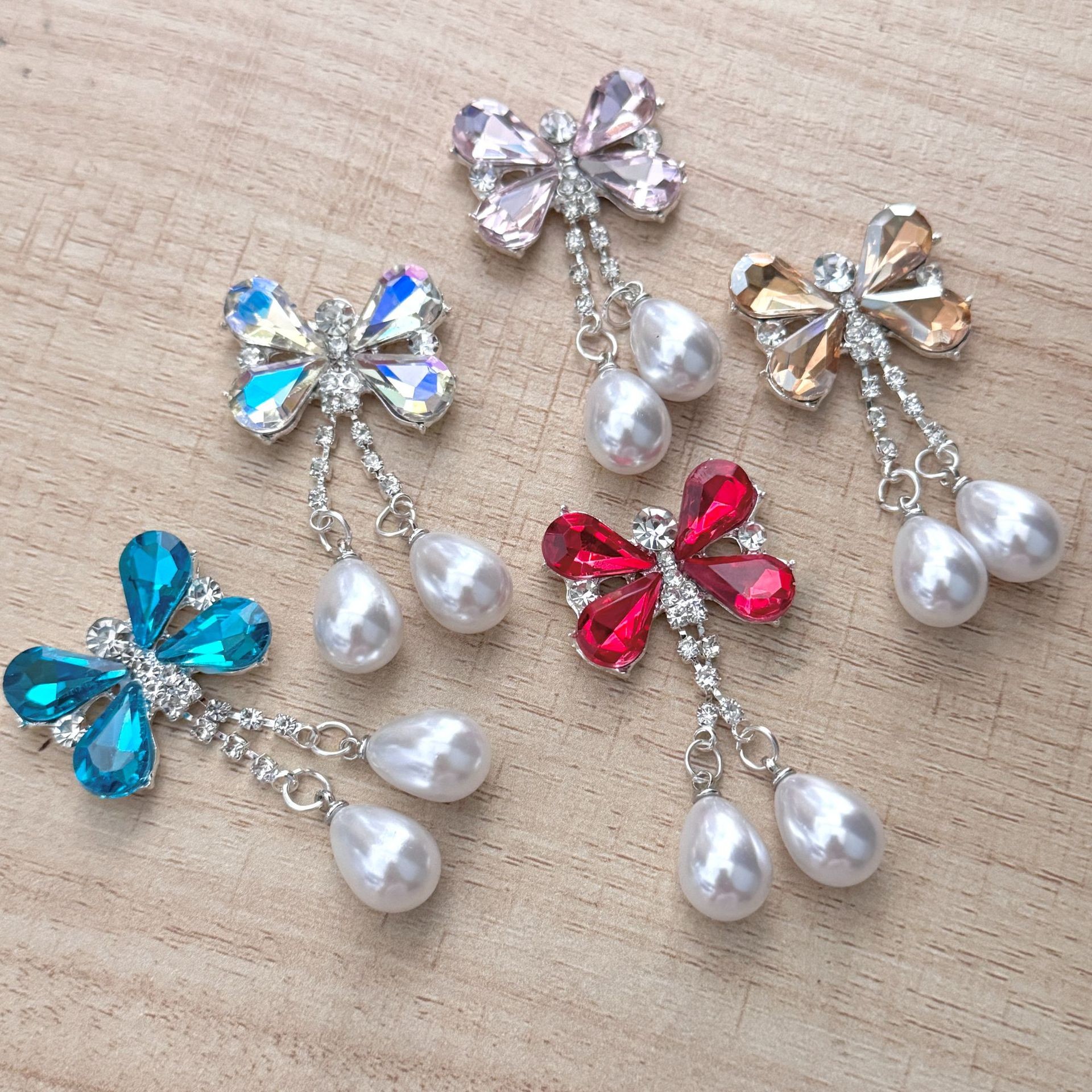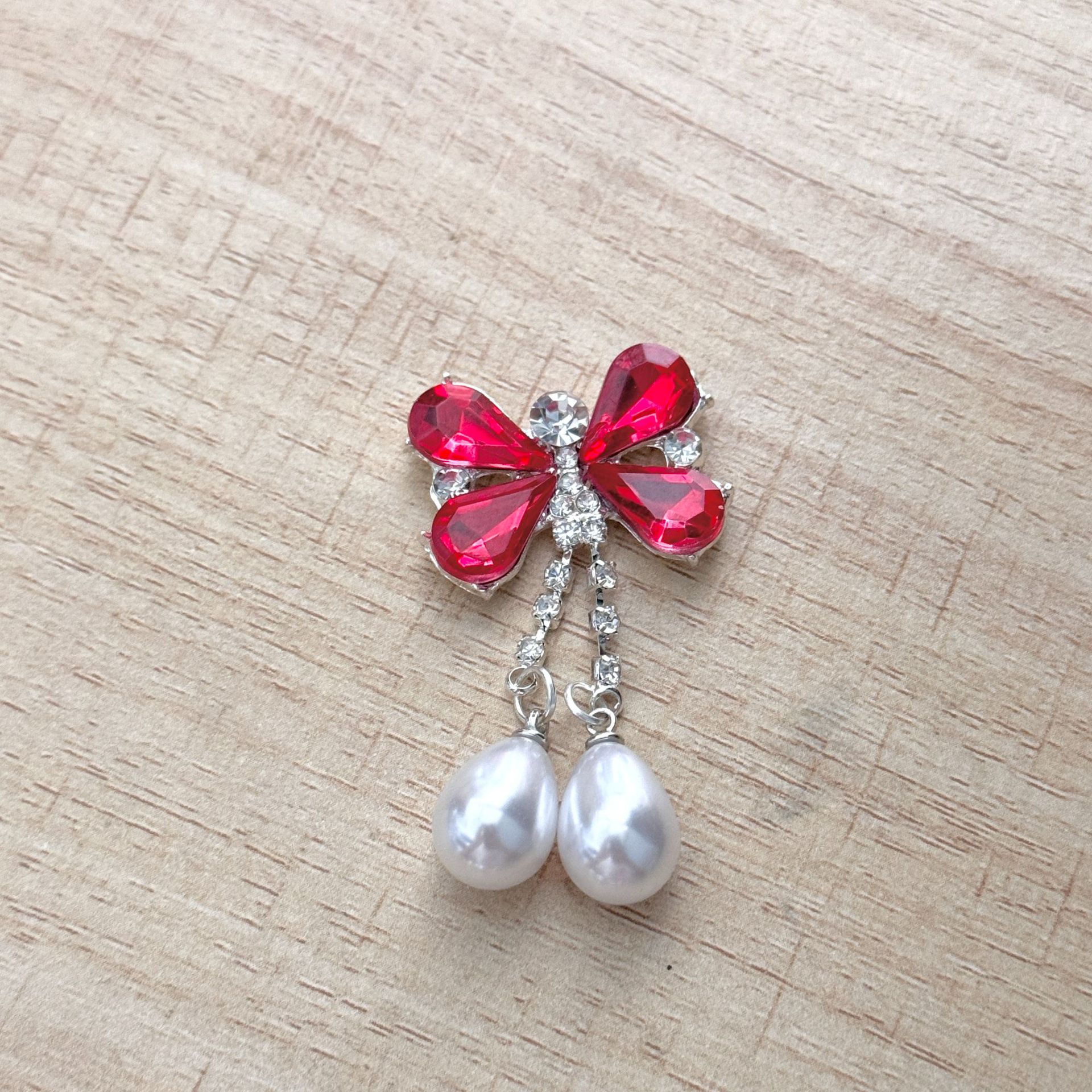 24*50mmButterfly Red Gemstone Dense Set Zircon Elegant Pendant Alloy Jewelry Accessories.