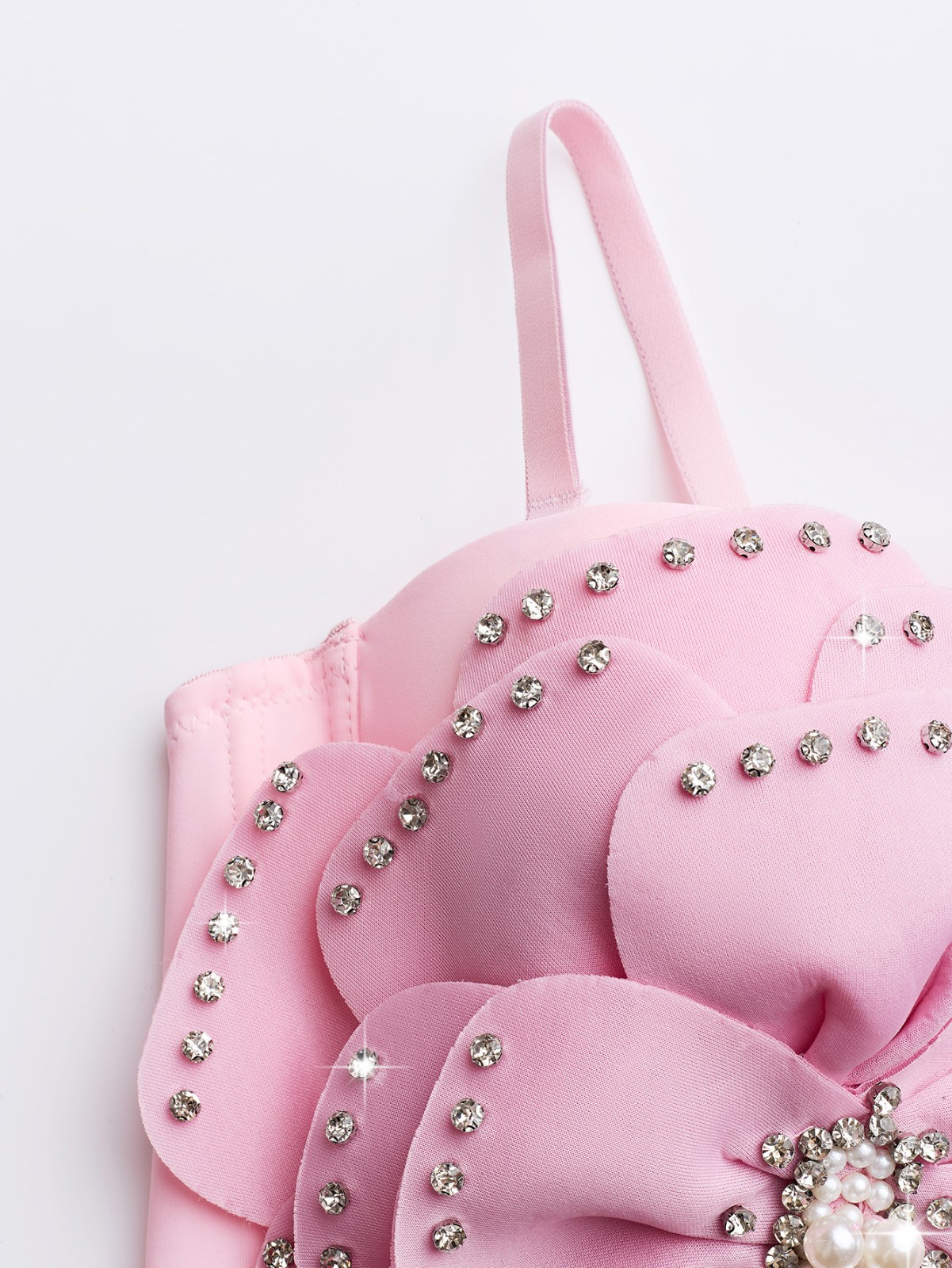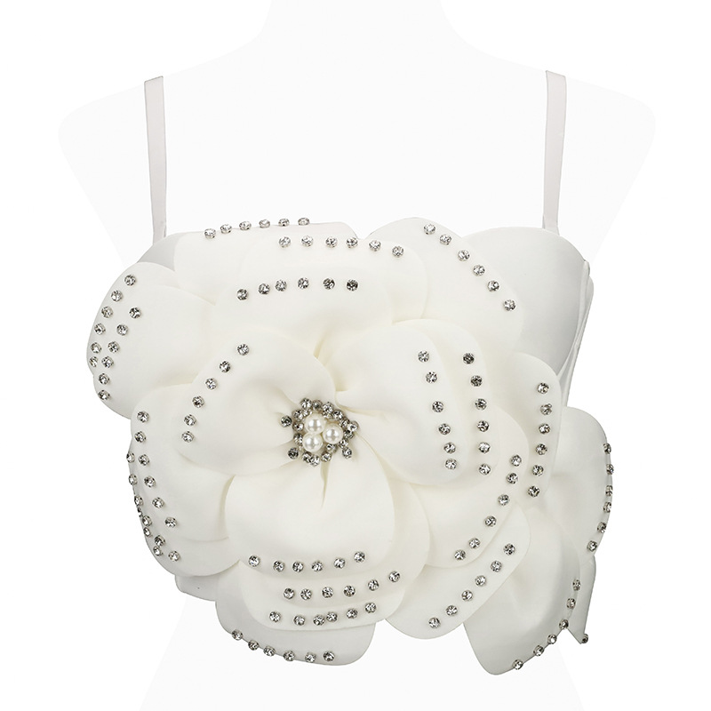 Cross-border Women's Handmade Rhinestone Strapless Camisole Outerwear Elegant Floral Tube Top Stage Outfit