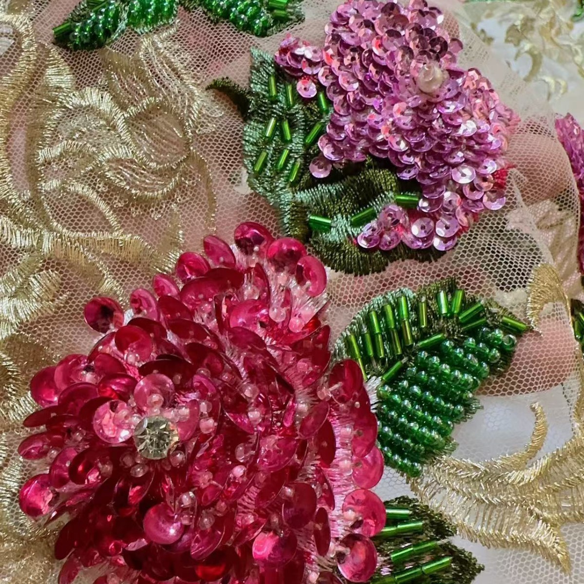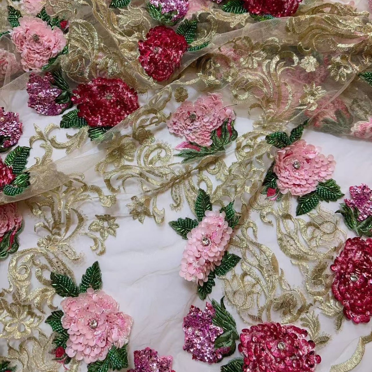 Cross-border handmade beaded multicolor sequins flowers embroidered cloth dress dress wedding fabric lace fabric fabric