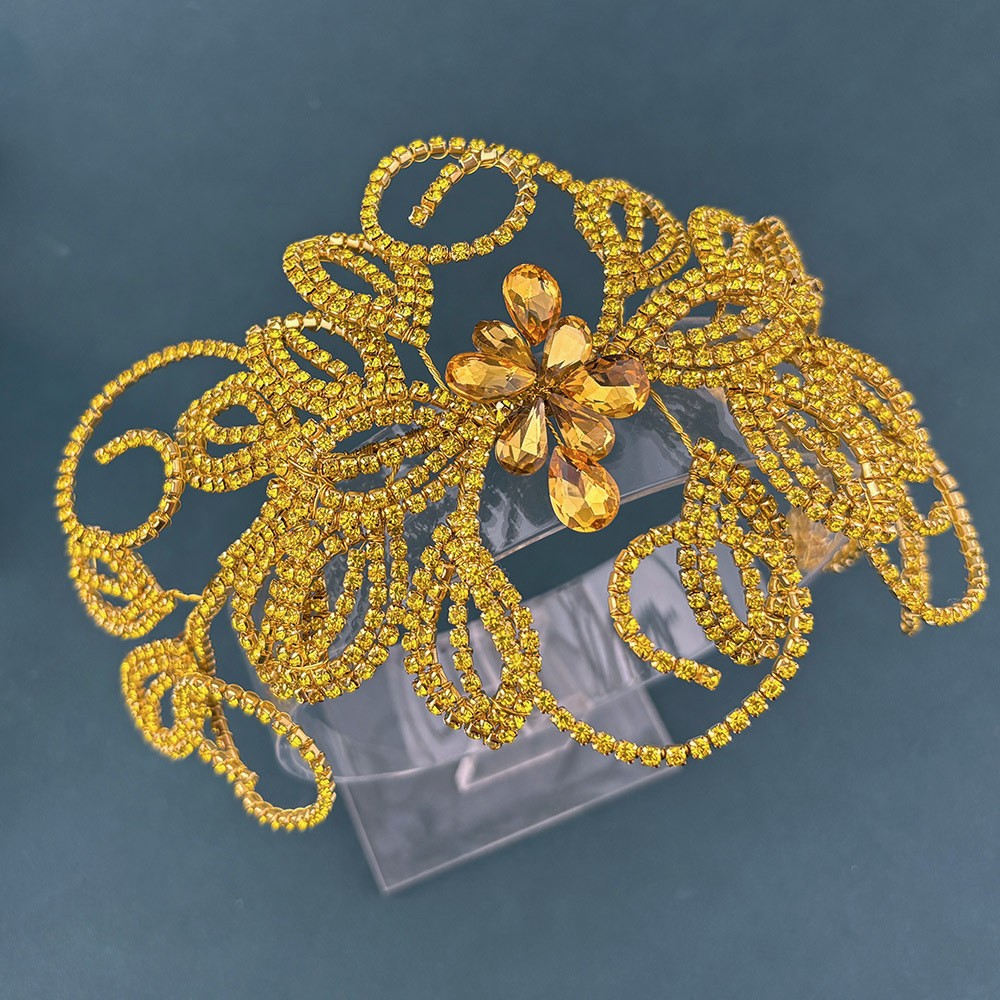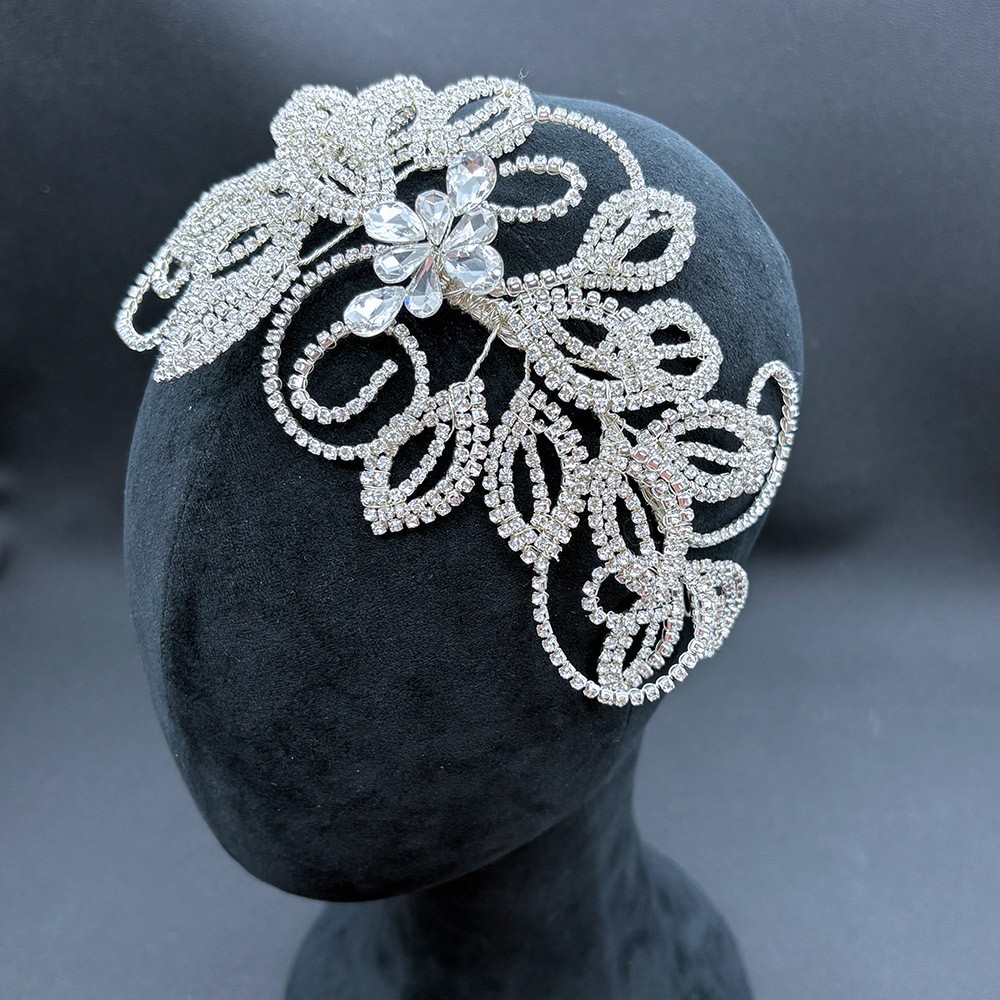 Handcrafted Bridal Headpiece — Rhinestone Leaf & Claw-Chain Design — Wedding Gown Accessory, Hair Crown, and Headband