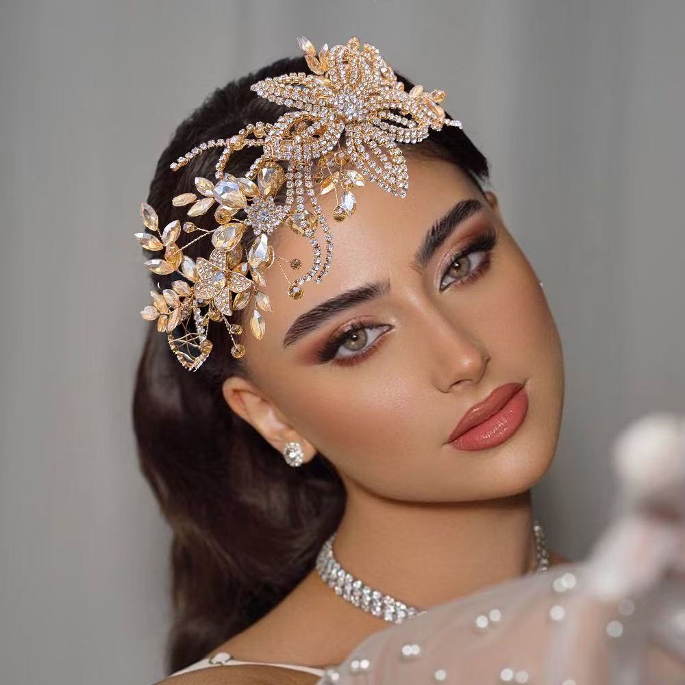New cross-border handmade rhinestone headband for brides, claw chain style headband, wedding dress accessory.