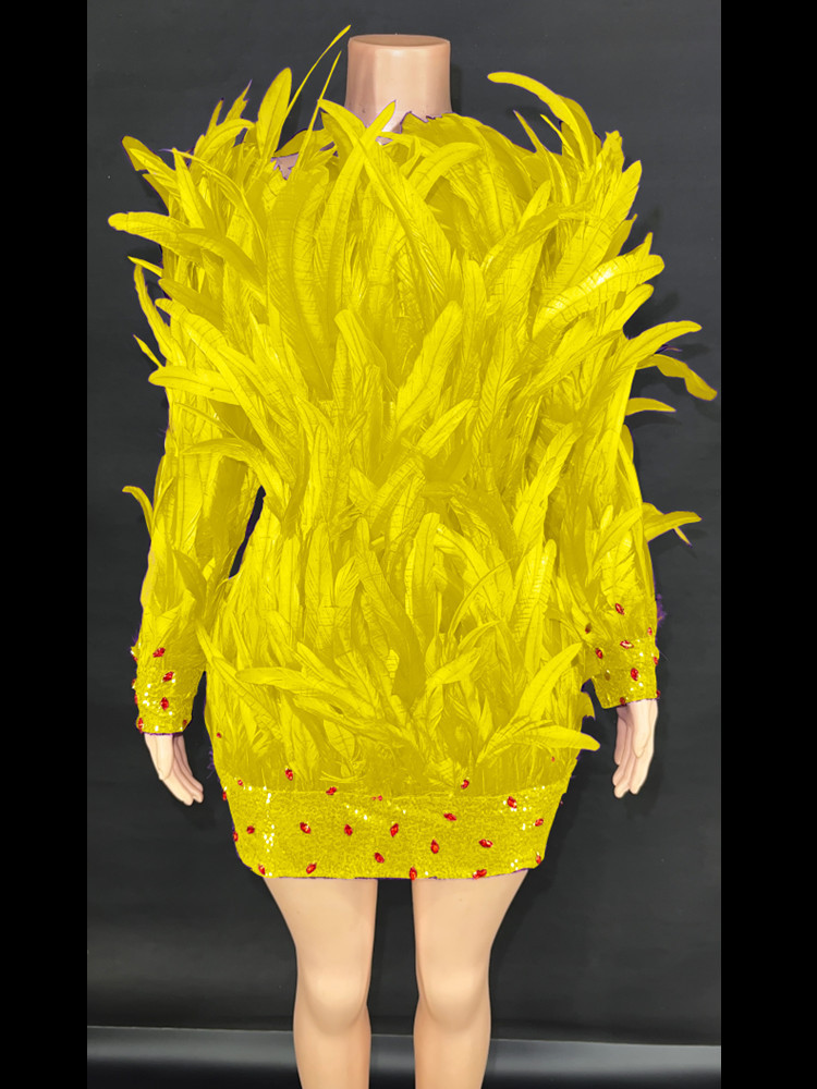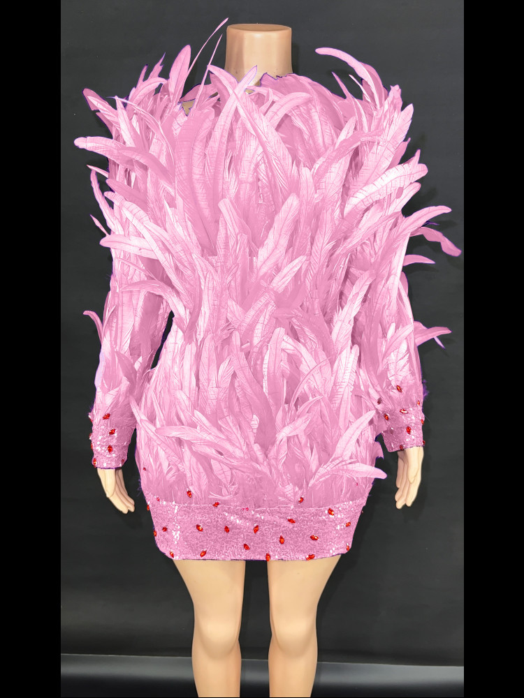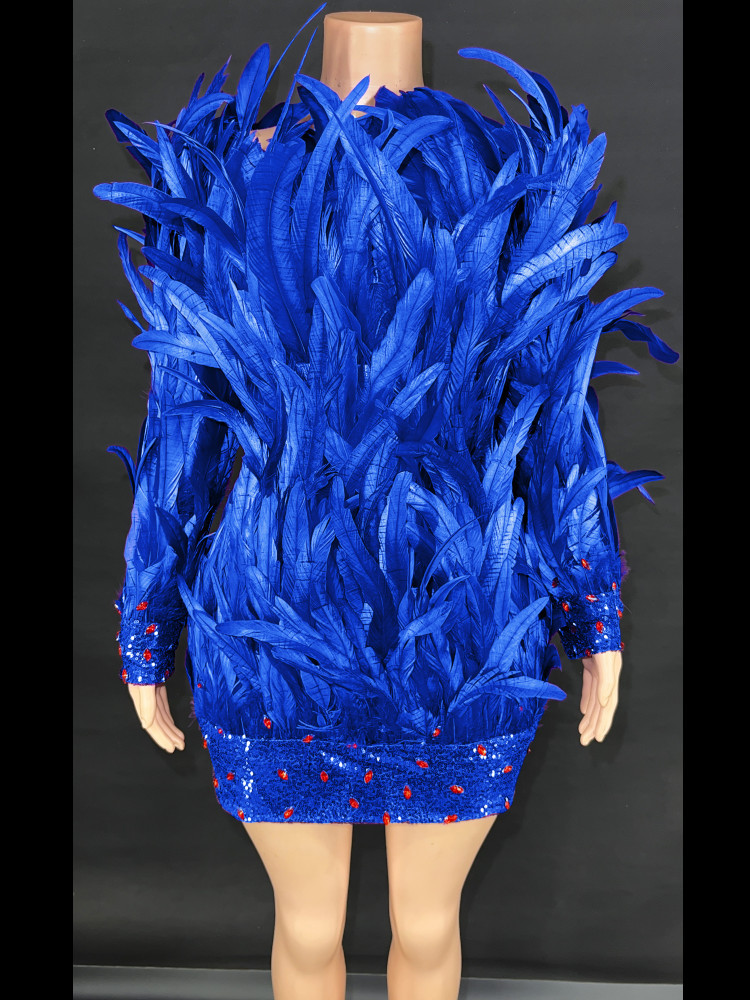 Cross-border European and American female singer feather sexy tight hip skirt net red nightclub party birthday banquet dress