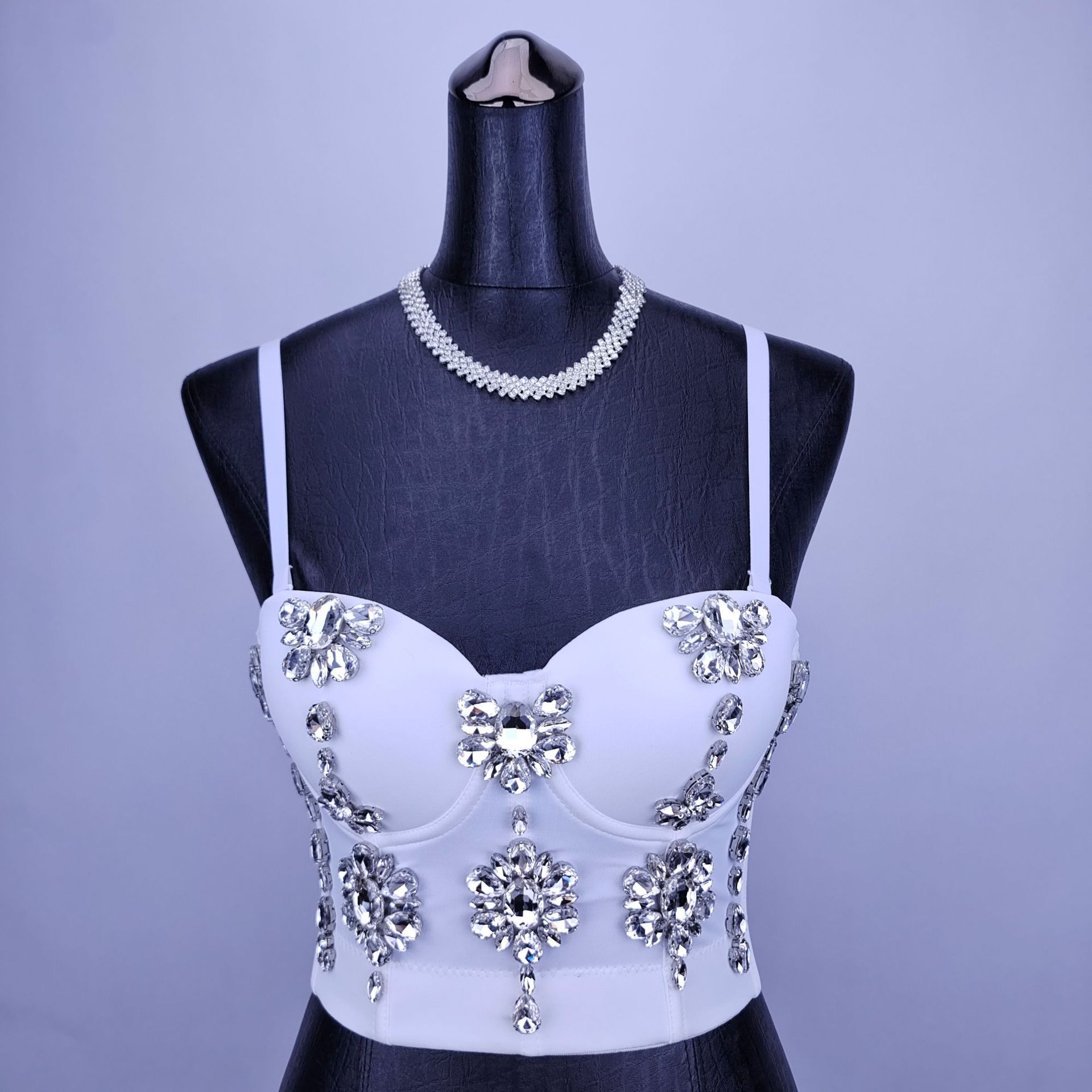 Cross-border Hot-Selling Diamond Decorated Thin Strap Slim Fit Fishbone Strap Short Bra