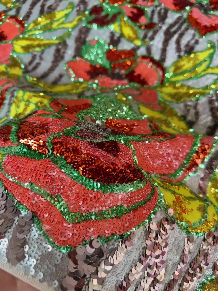 Cross-border Mesh Heavy Industry Multicolor Sequin Flower Embroidered Cloth Dress Skirt suit fabric lace fabric