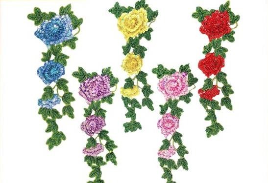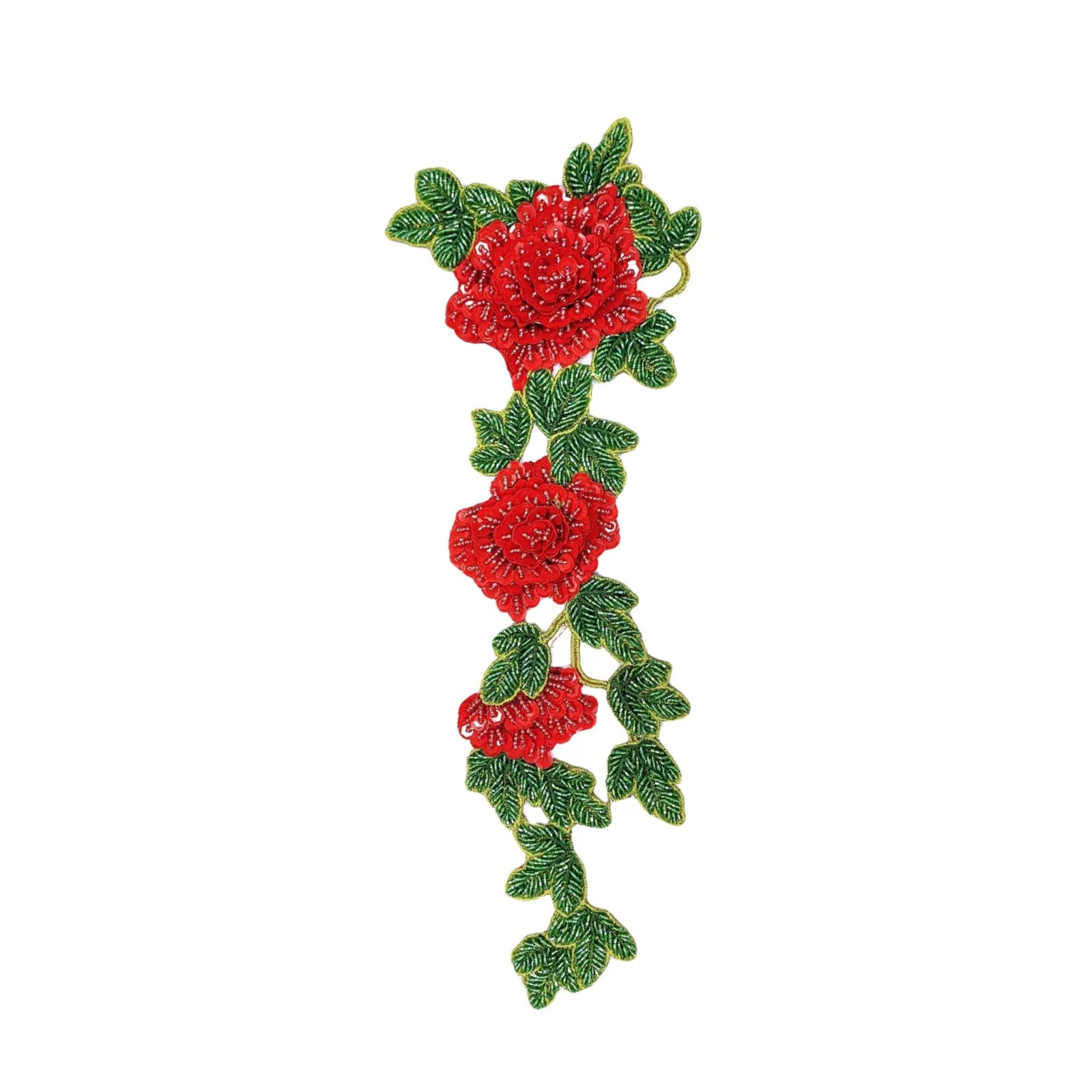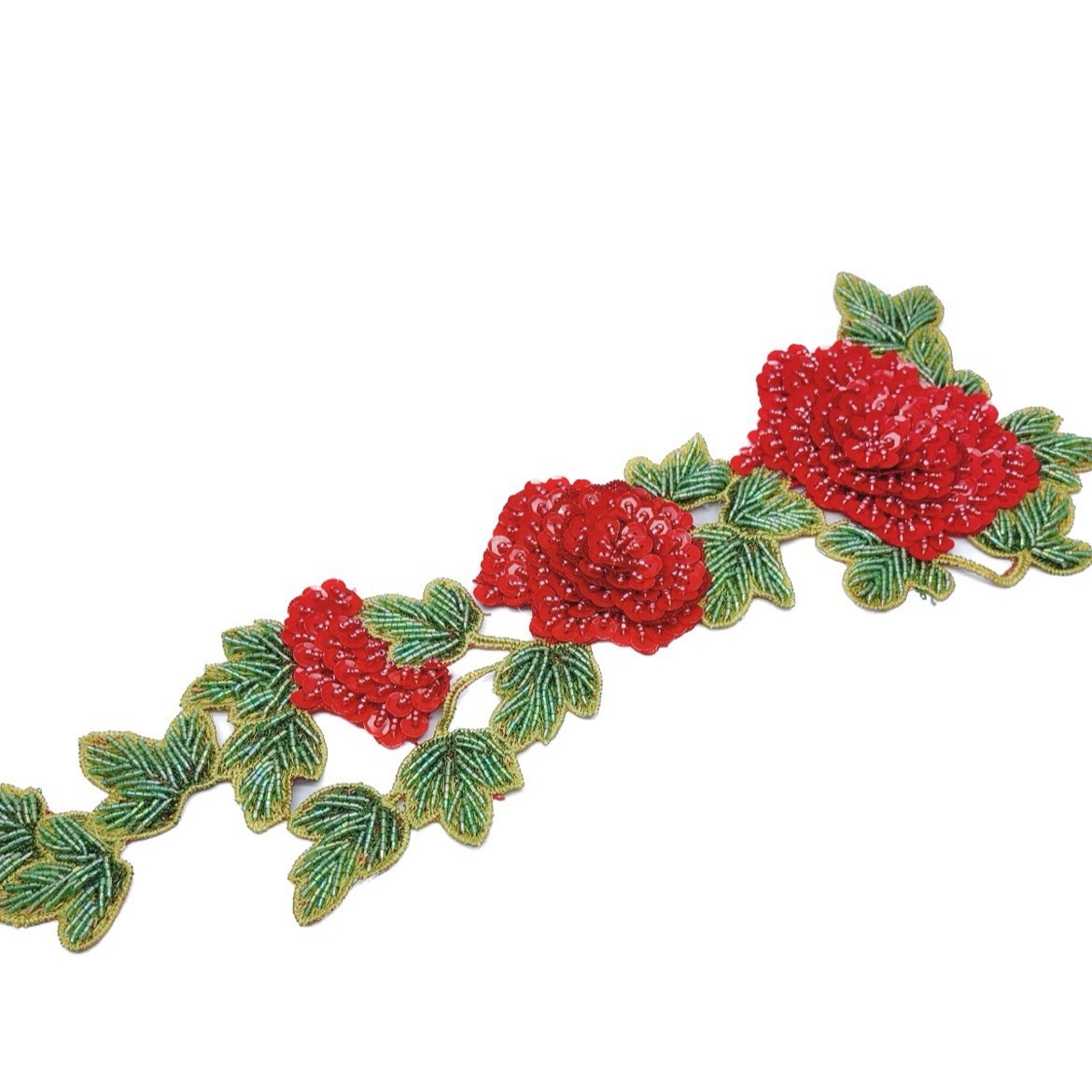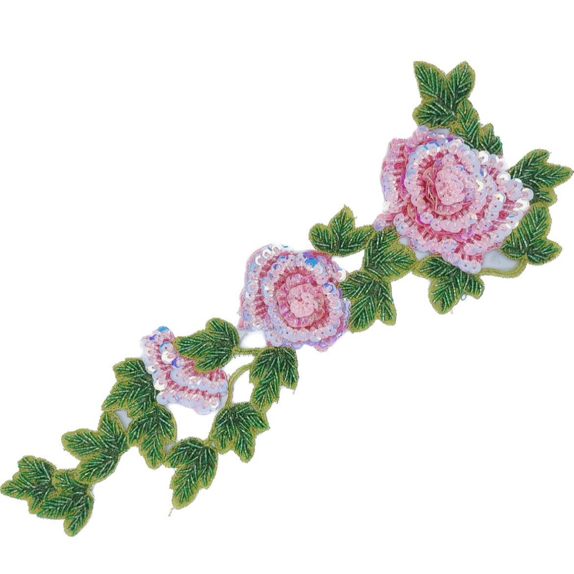 Heavy handmade beading large decorative DIY accessories embroidered pink and red flower cloth patch clothing hat applique