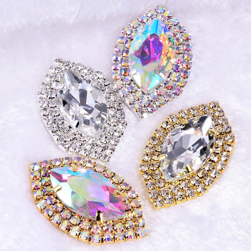 Gold Bottom Silver Bottom Glass Water Drop Oval Horse Eye Rhinestones for Garment Nail Art Bags & Hats