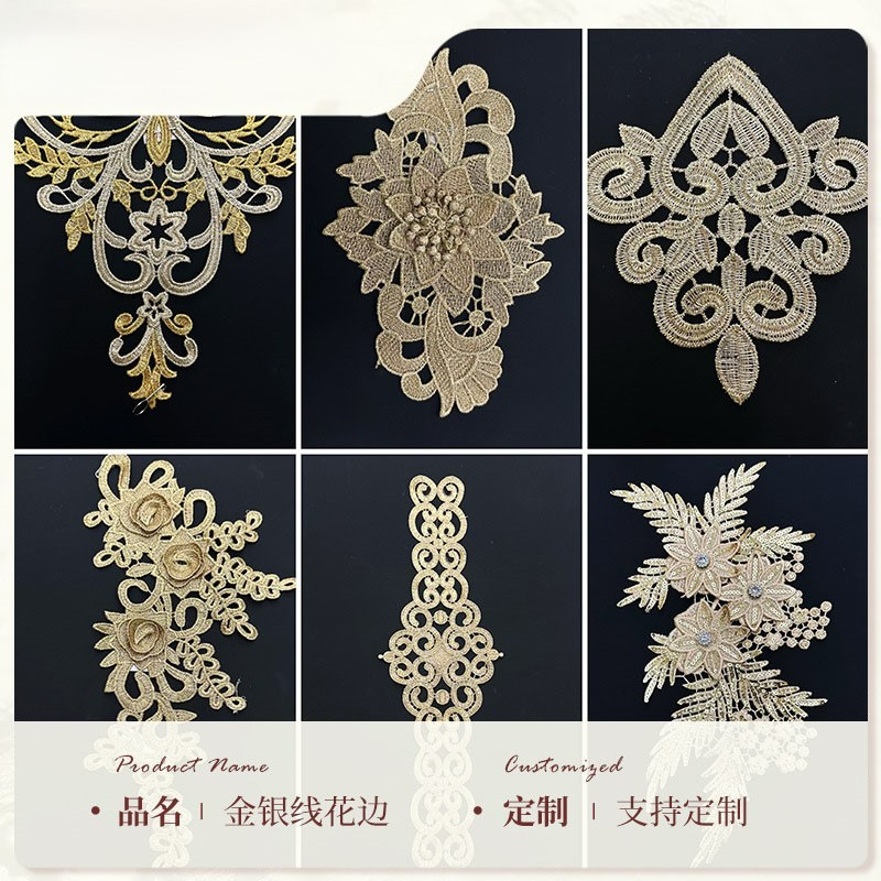 Gold Thread Three-dimensional Embroidery Hollow Embroidery Double Flowers Water-soluble Double Flowers Lace