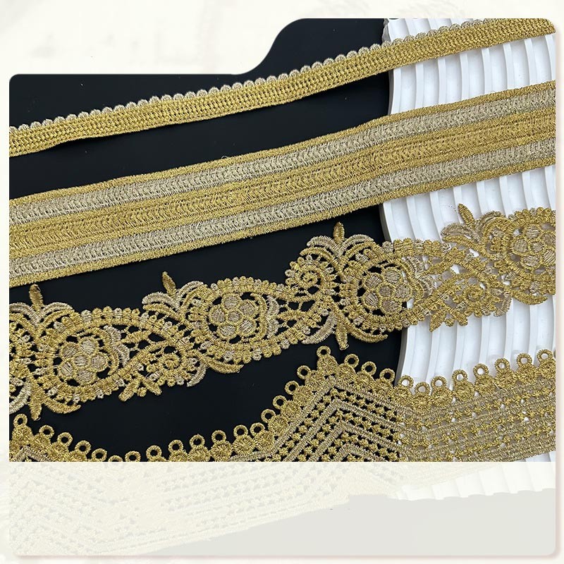 Gold Thread Lace Water Soluble Embroidery Polyester Geometric Hollow National Style Clothing Lace