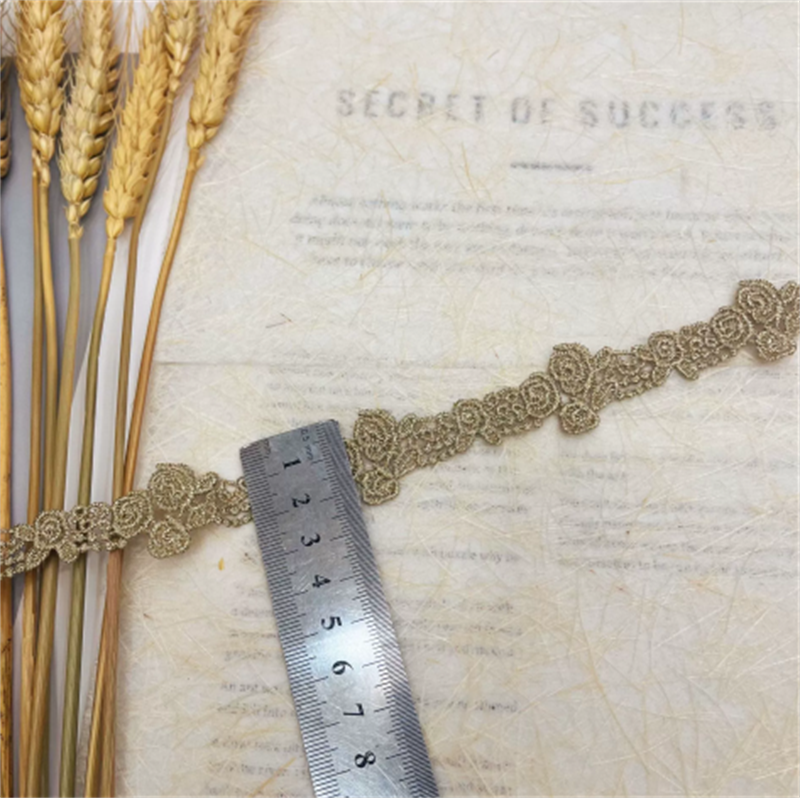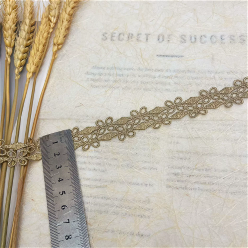 Gold lace trim, embroidered openwork water-soluble gold thread trim, gold thread trim accessories for collar and cuffs