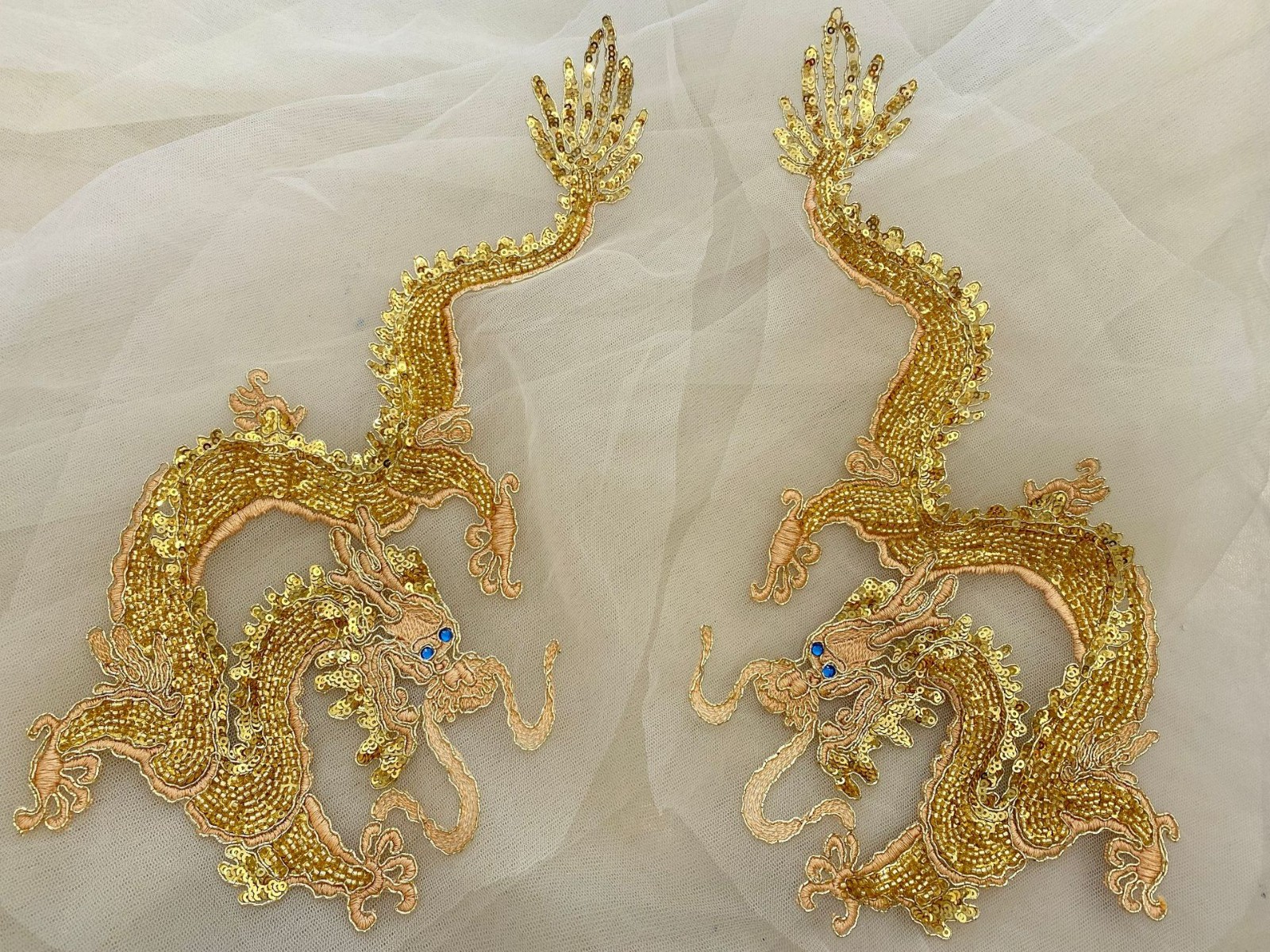 Golden Dragon Wine Red Phoenix Spot Beads Beaded Rice Beads Appliques Xiuhe Clothes Dress Mother's Clothing Decoration