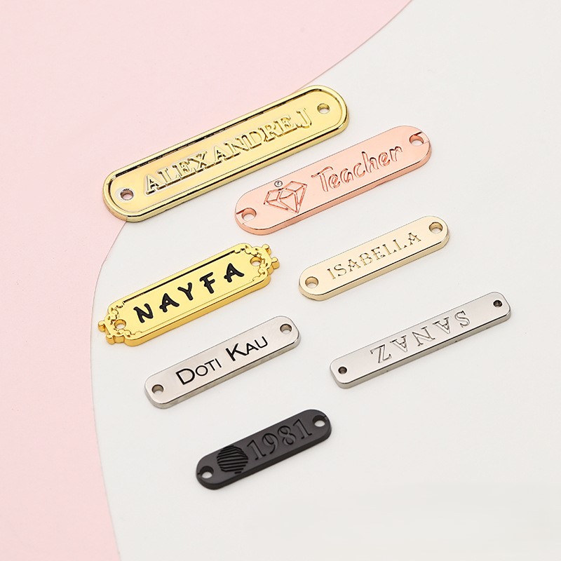 Rectangular Nameplate Stitching Paint Brushed Metal Nameplate Electroplated Alloy Decorative Scarf logo Hardware Nameplate