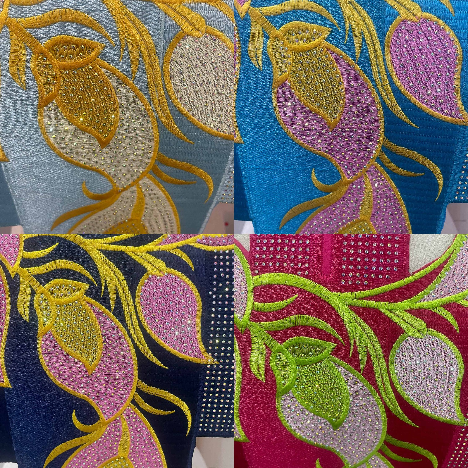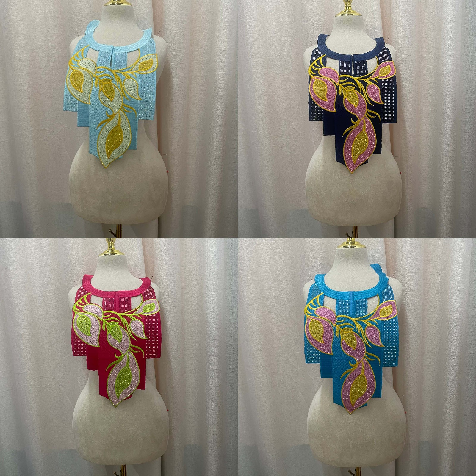 African Fashionable High Quality Embroidery Cloth Patch with Hot Diamond New Style Adhesive Backing Accessories