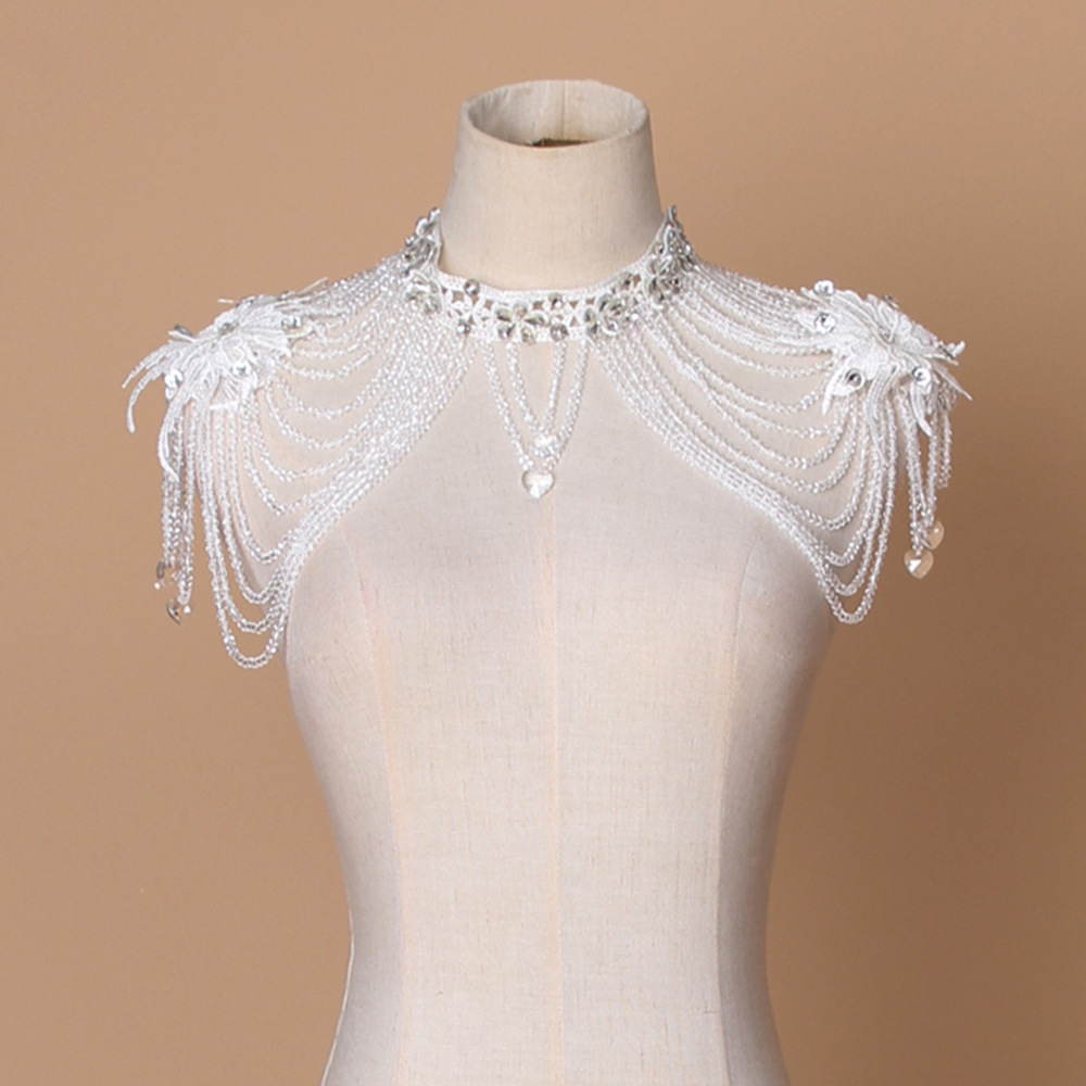 High Quality New Fashion Chain Tassel Style Bridal Silver Rhinestone Crystal Shoulder Chain
