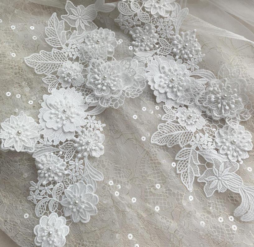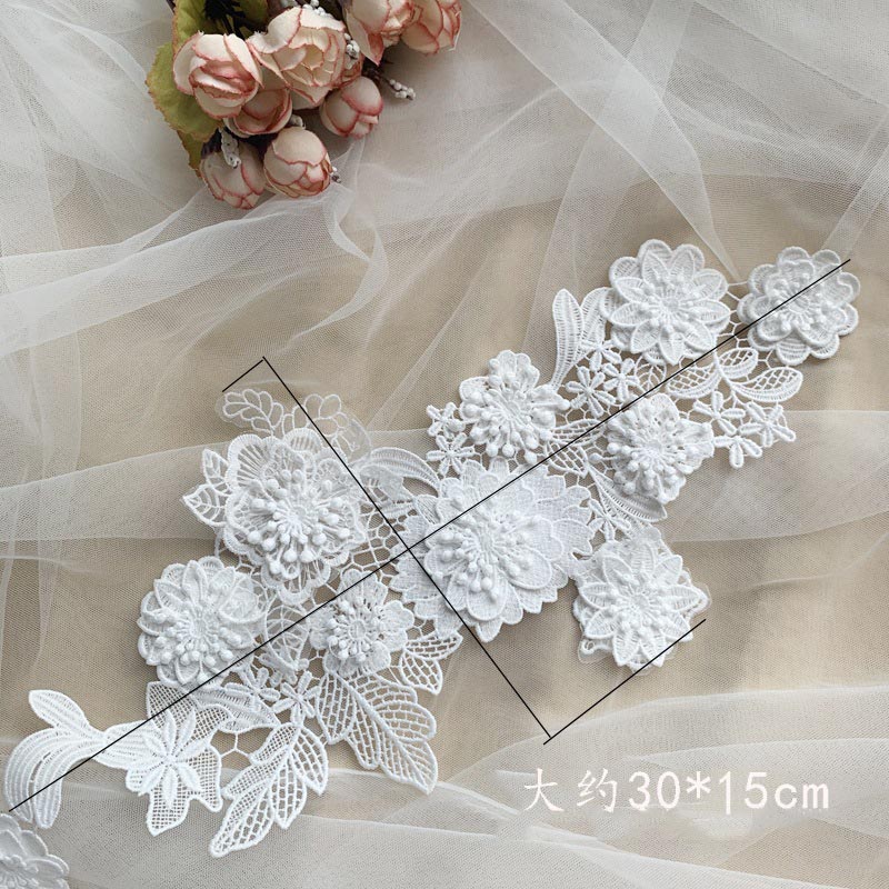 Black White High-End Premium Embroidered Fine Line Milk Silk Water-Soluble Plus Organza Multi-Layer 3D Flower Lace Sew-On