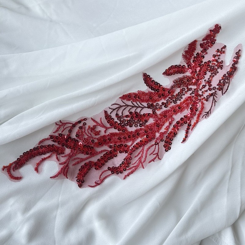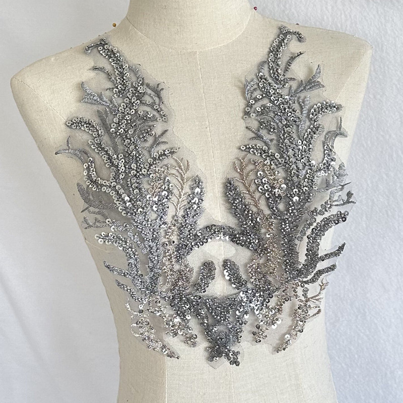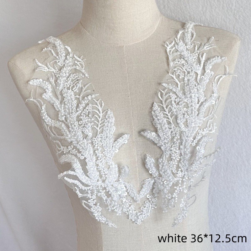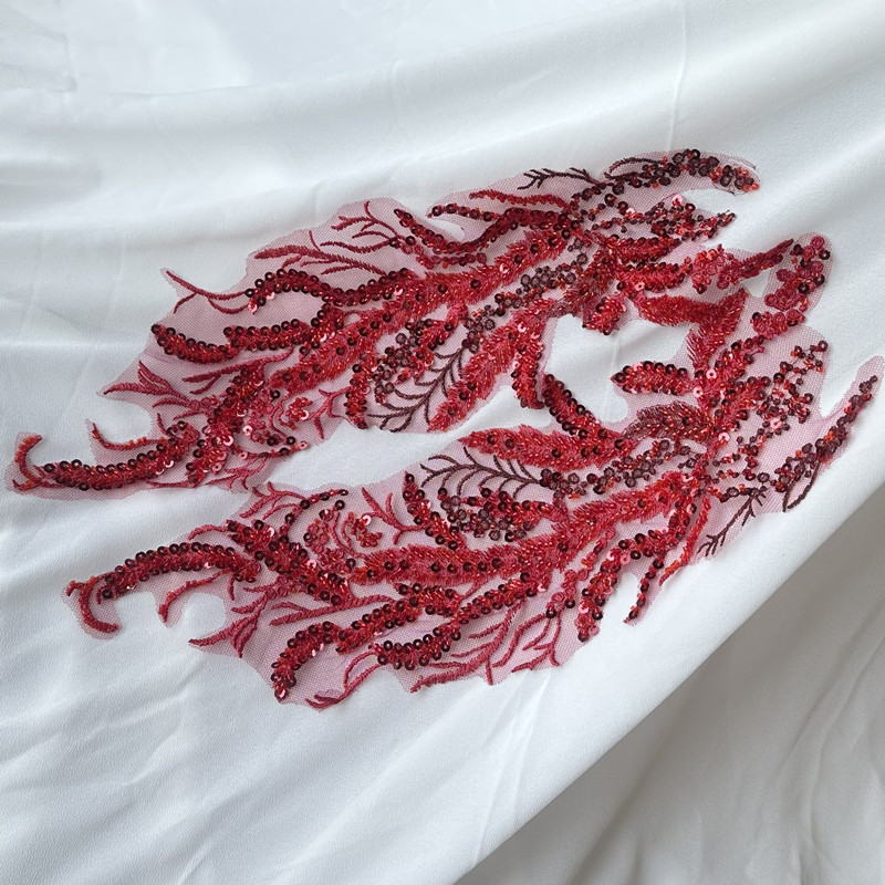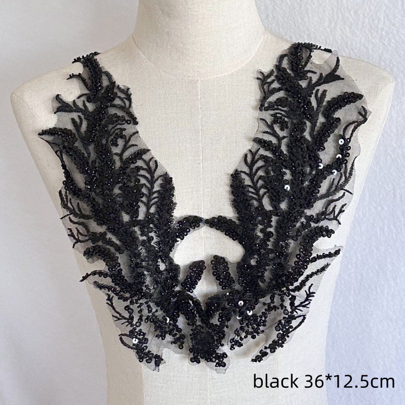 Black White Red Beaded Sequin Embroidery Patch Lace Mesh Applique for Wedding Dress Evening Gown DIY Decor