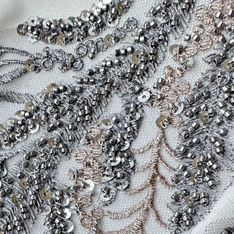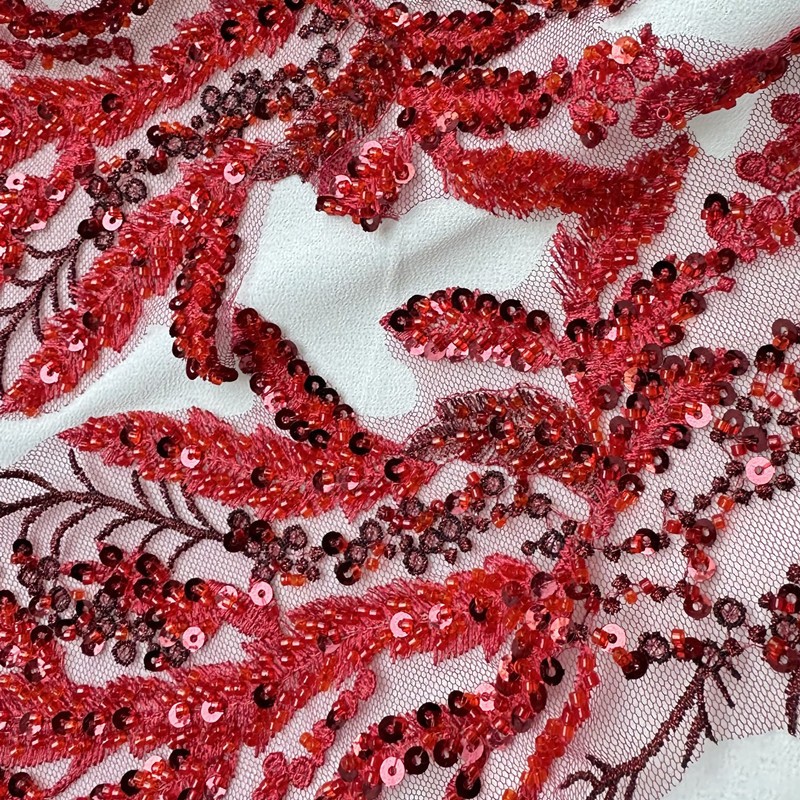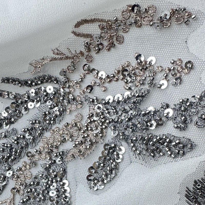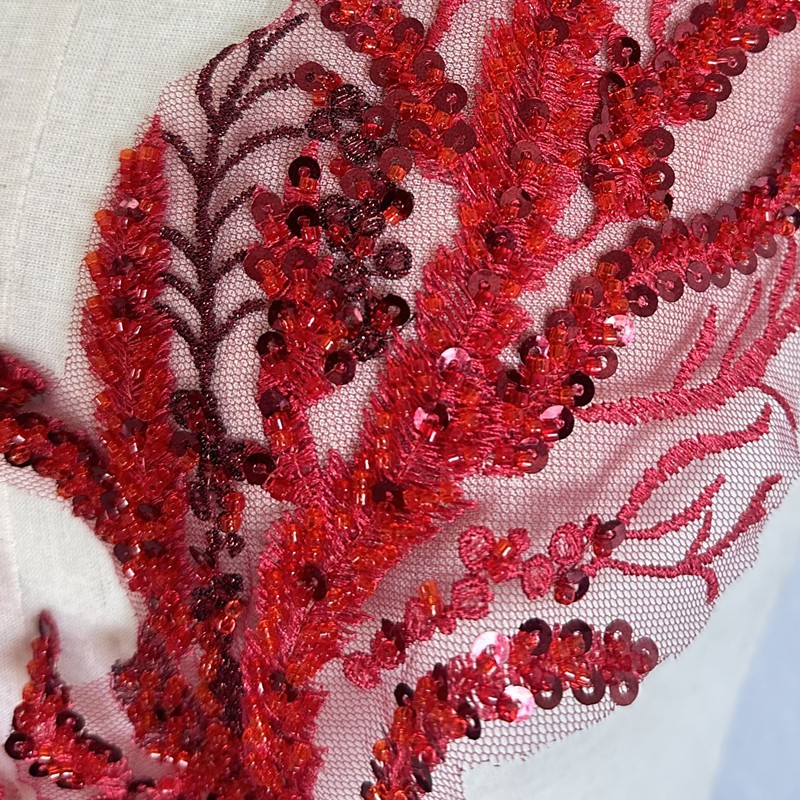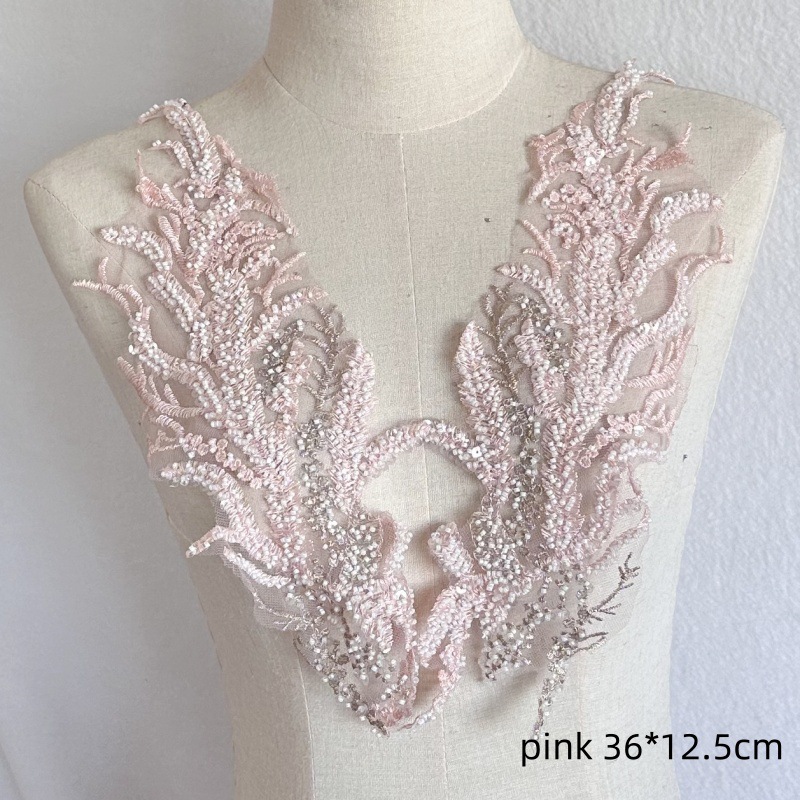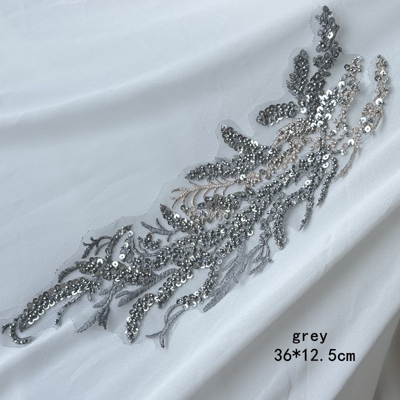 Black White Red Beaded Sequin Embroidery Patch Lace Mesh Applique for Wedding Dress Evening Gown DIY Decor