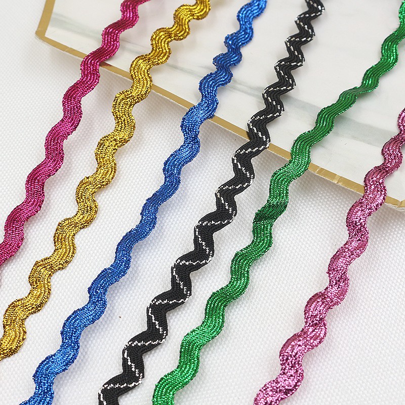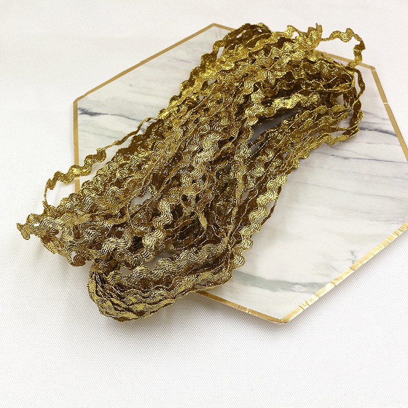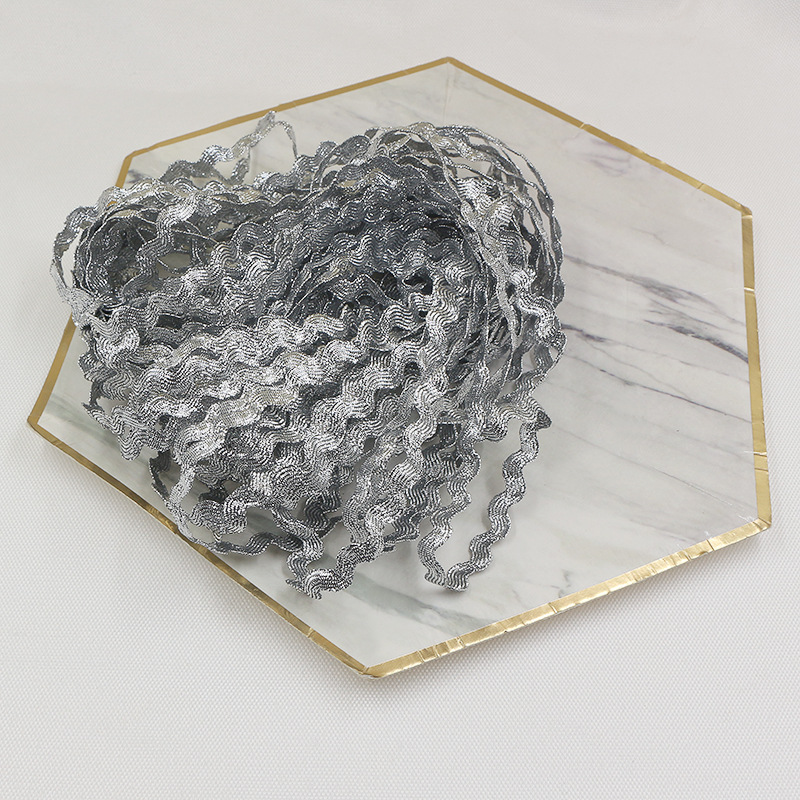 15 Yards Per Roll 5mm Gold and Silver Wave S-shaped Curved Edge Ribbon Sailor Belt Clothing Decoration Lace Ribbon