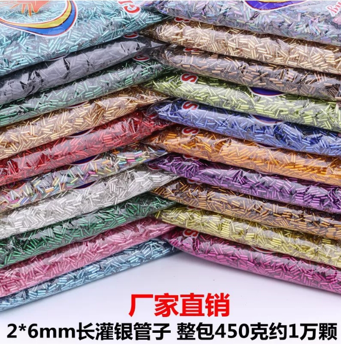 2*6mm Silver-filled Tube Beads Rice Beads Diy Braided Bracelet Necklace Loose Beads Clothing Accessories