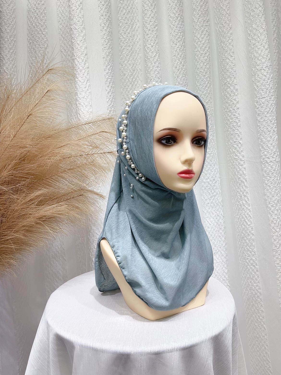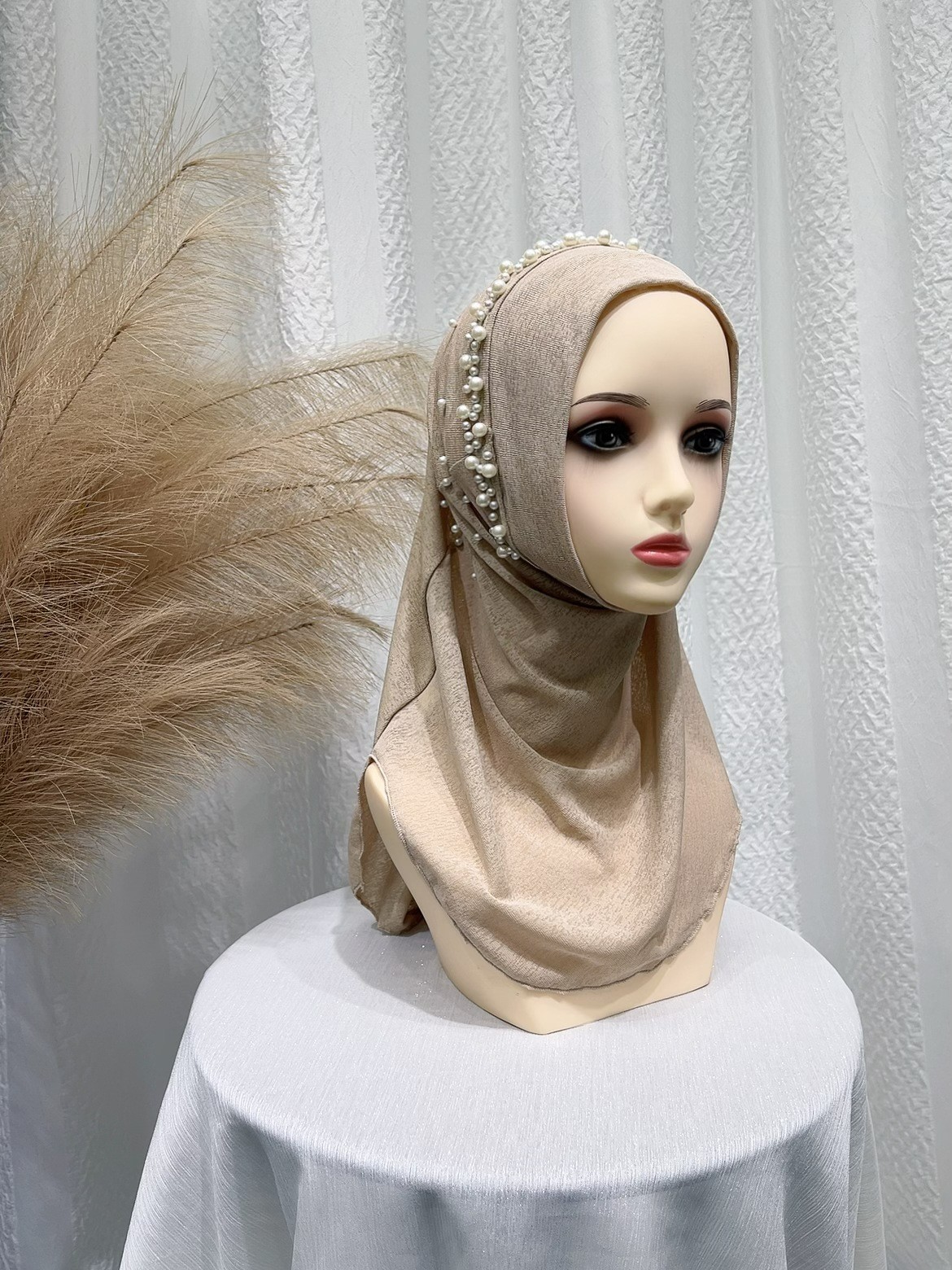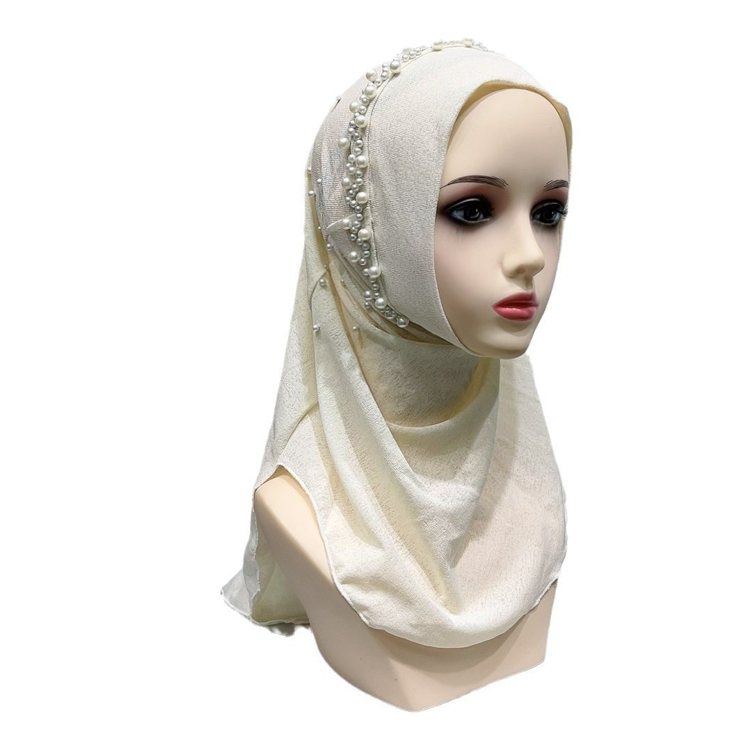2024 Summer New Cross-border Beaded Pullover Headscarf Shawl Elastic Solid Color Ethnic Pullover Hat Spot Wholesale