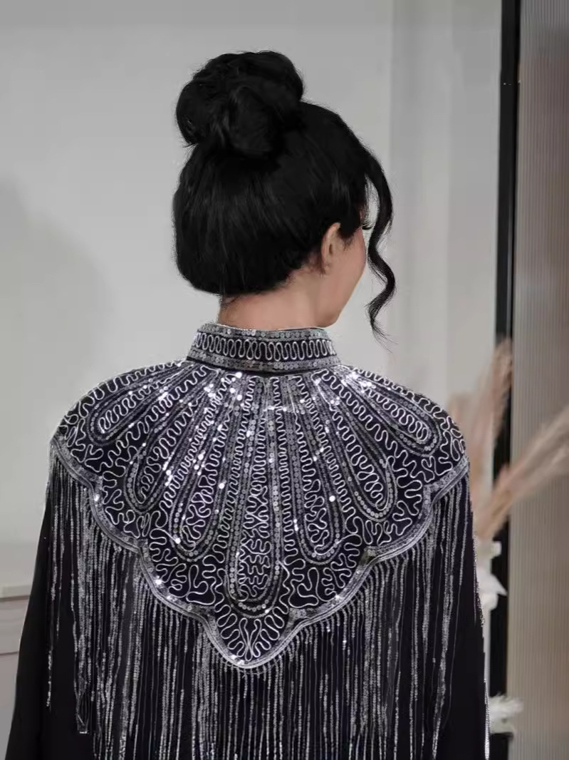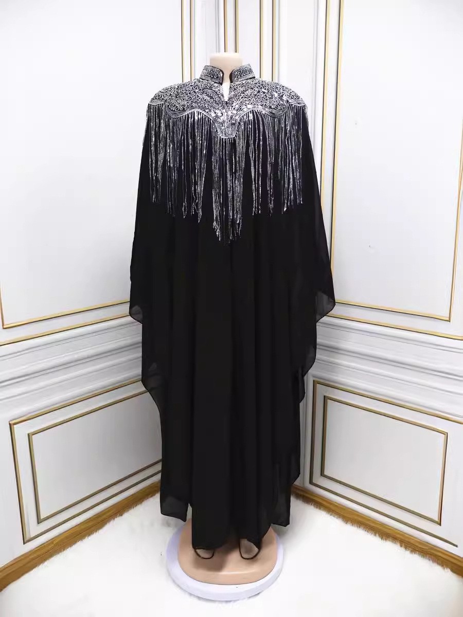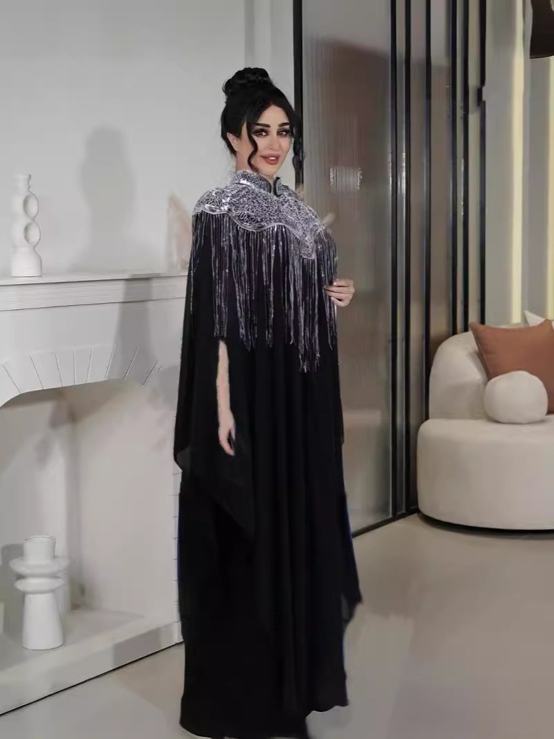 2024 Saudi Middle East Muslim Sequins Tassel Heavy Two-piece Suit Dress Robe National Costume for Women