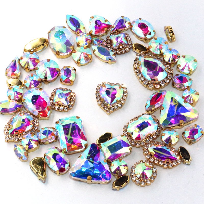 50 mixed crystal welding edge single claw hand sewn diamonds wedding dress accessories headdress DIY diamond jewelry