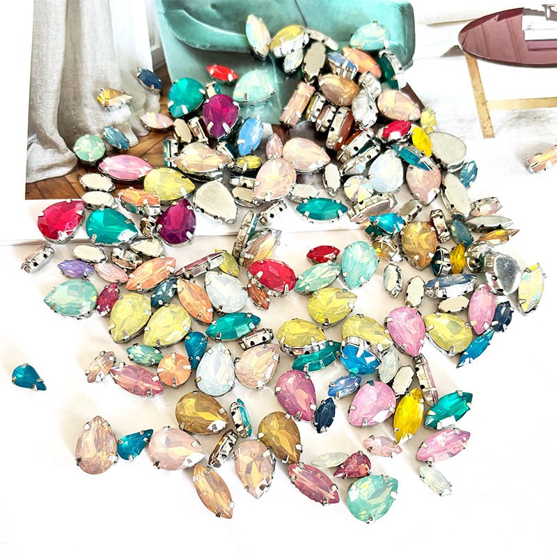 50pcs Assorted Hand-sewn Diamonds Flat-bottom Single-claw DIY Wedding Rhinestone Jewelry Accessories