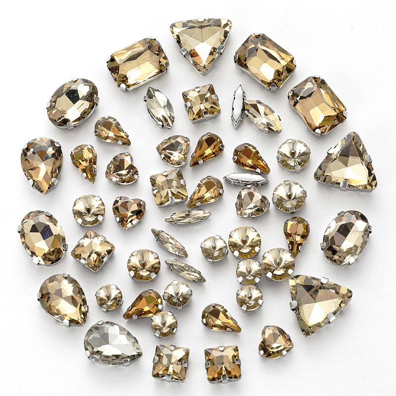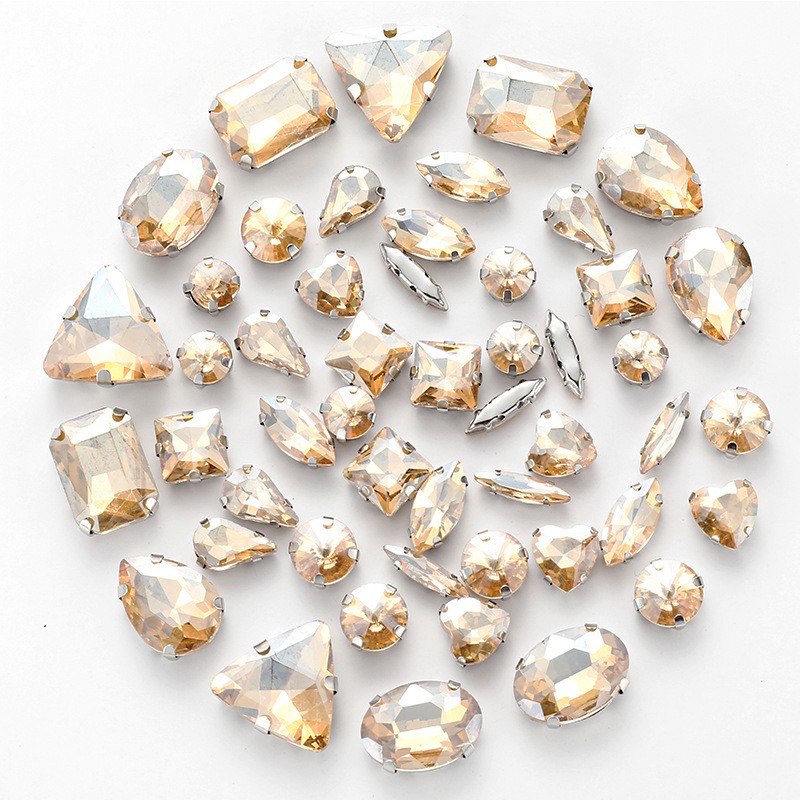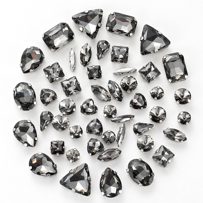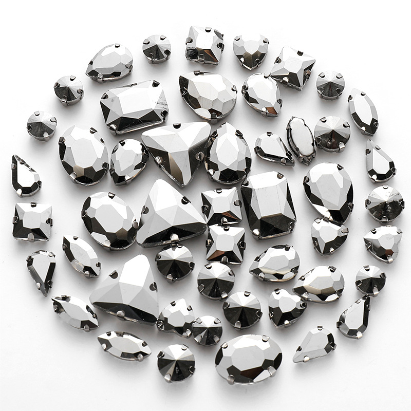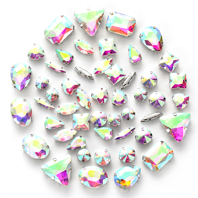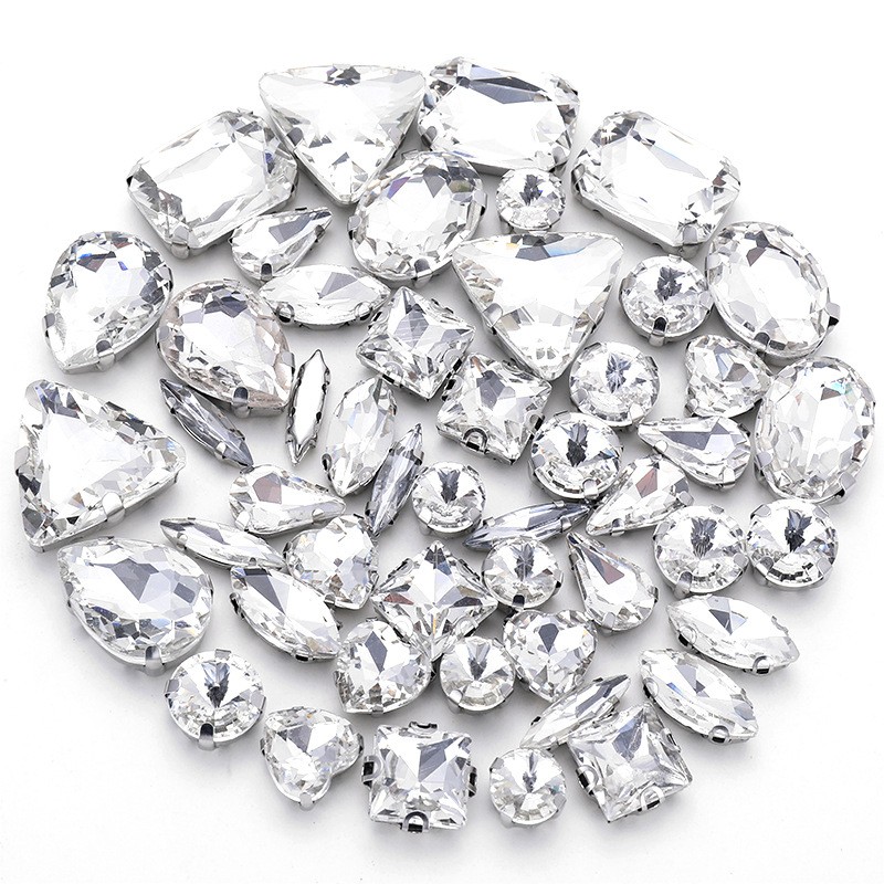 50pcs mixed silver claw diamonds crystal hand sewn diamonds with holes DIY handmade wedding dress material jewelry accessories