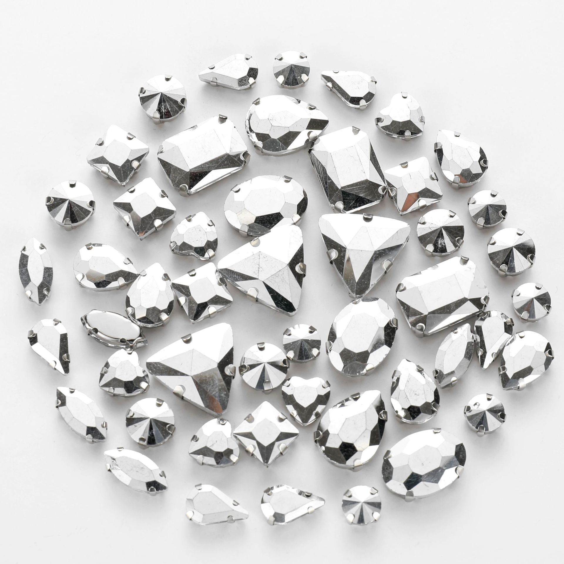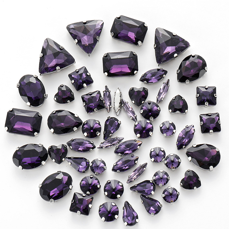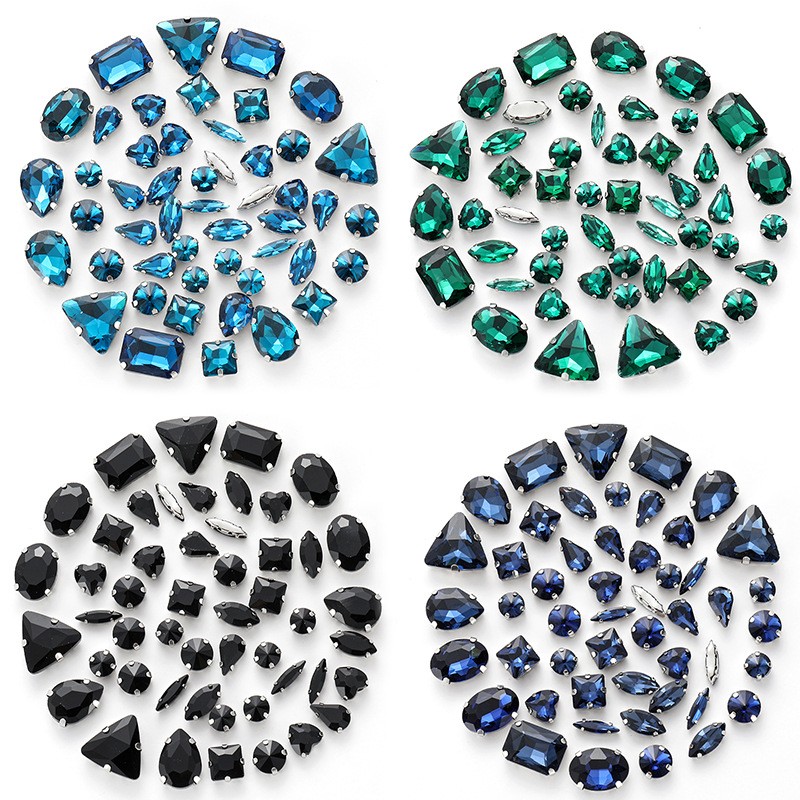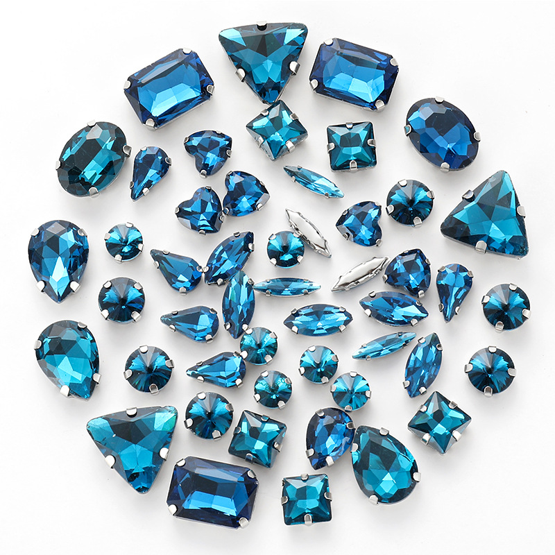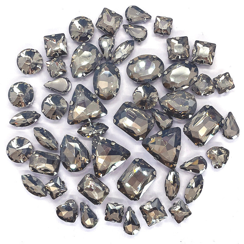 50pcs mixed silver claw diamonds crystal hand sewn diamonds with holes DIY handmade wedding dress material jewelry accessories