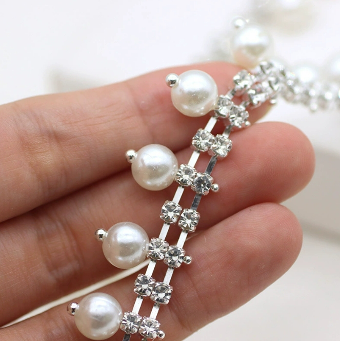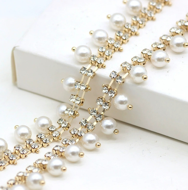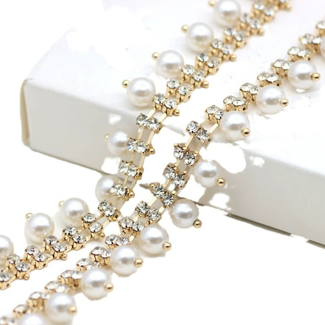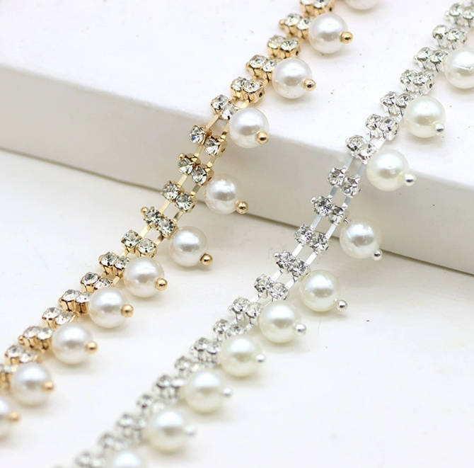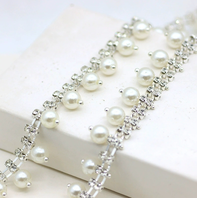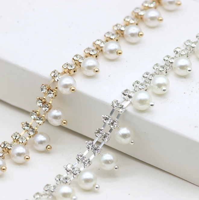 8mm Pearl Rhinestone Chain Gold and Silver Double-Row Diamond Fancy Claw Chain DIY Wedding Hat Xiuhe Clothing Accessories