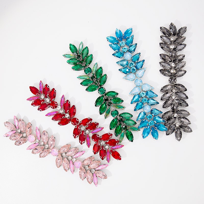 Colorful fancy rhinestone hot flower hand-sewn applique wedding dress accessories hotfix rhinestone
