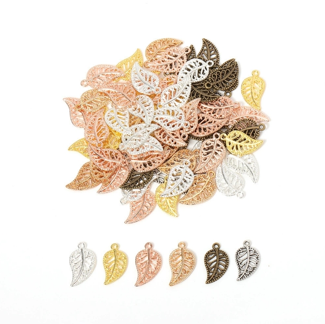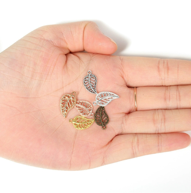 DIY Retro Alloy Jewelry Accessories Hollow Leaf Pendant Small Pendant European and American Hot Sale 17*19mm