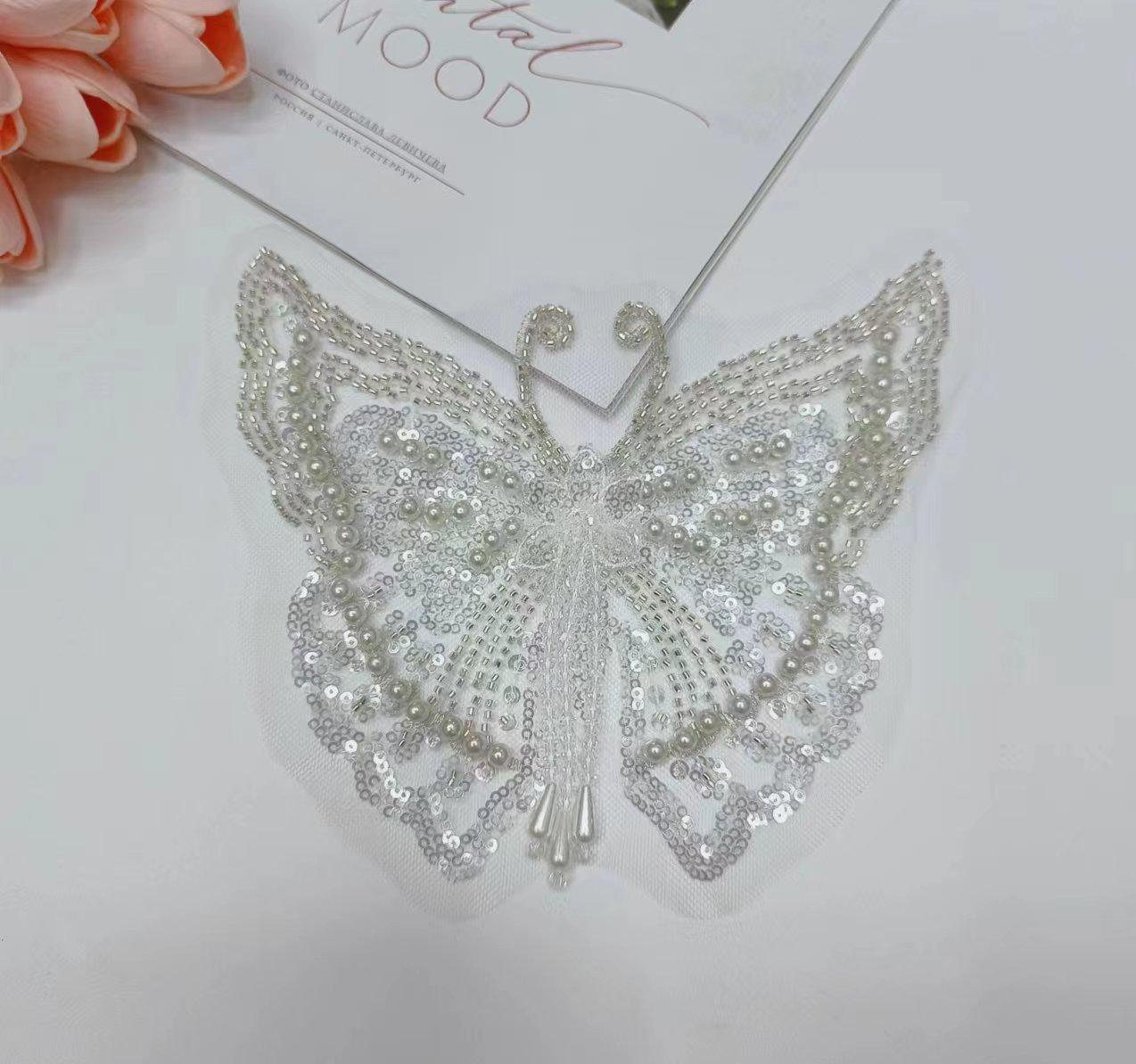 DIY butterfly Handmade Beaded Sequins Crystal Tassel Hanging Bride Wedding Dress Accessories Cloth Patch