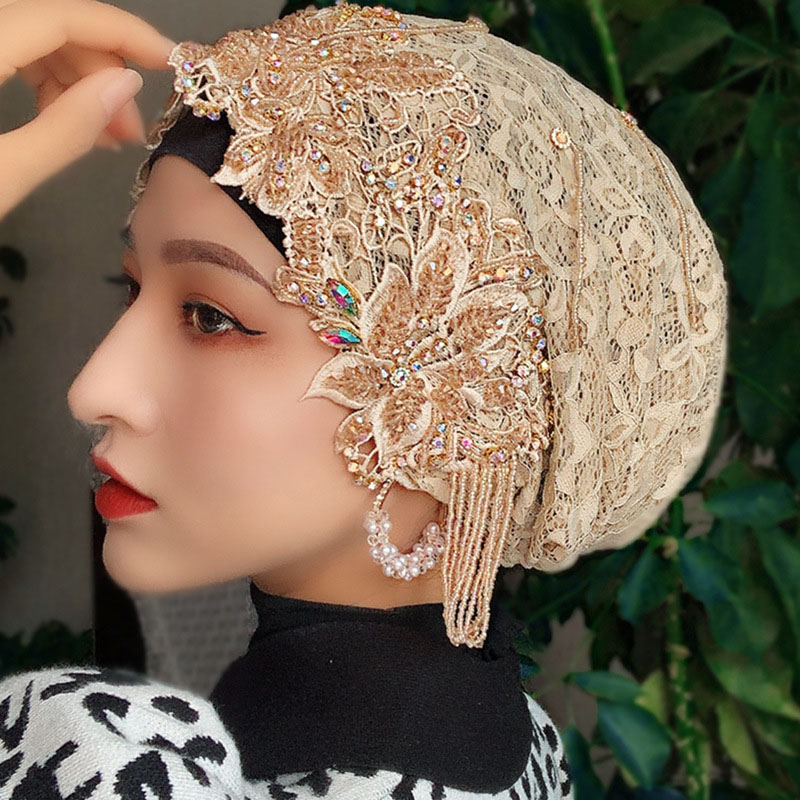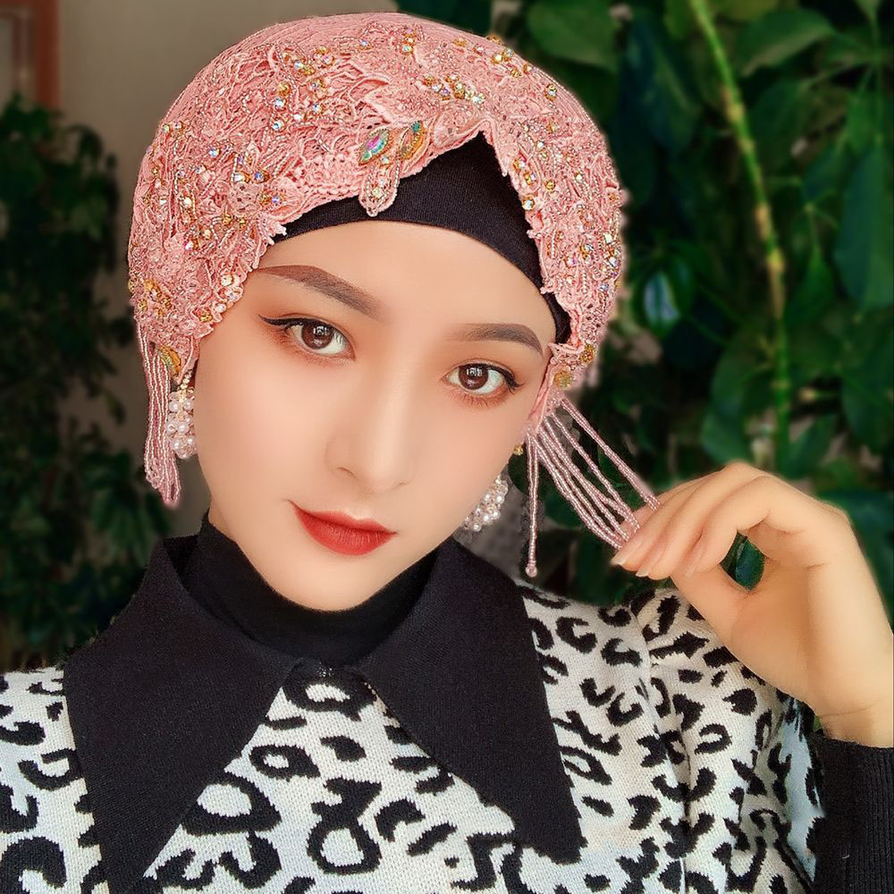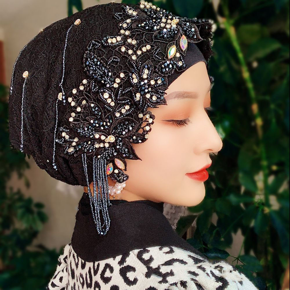 Scarf Hat Malay Style Turban Handmade Beaded Lace Turban