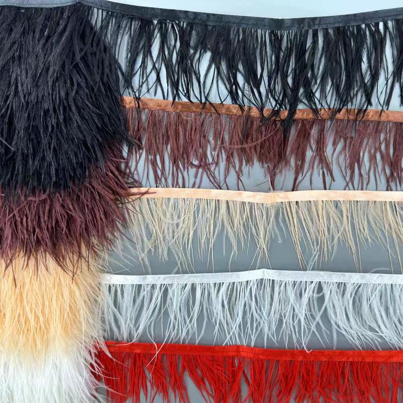 New Style Beautiful Ostrich Feather Trim With Tassel Fringe For Stage Costume And Dance Dress Hem