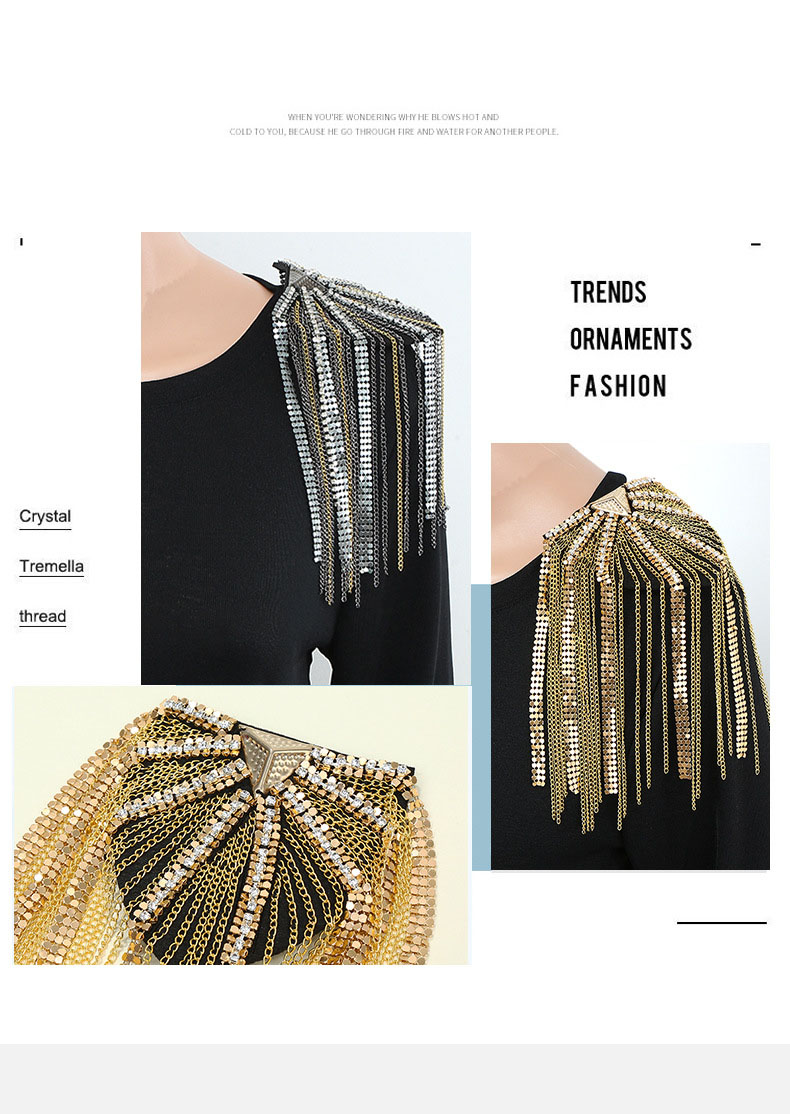 New arrival beautiful metal inset rhinestones tassel shoulder badge clothing accessories
