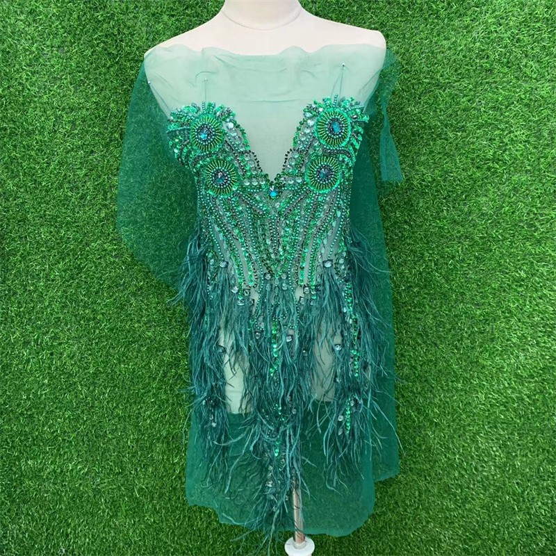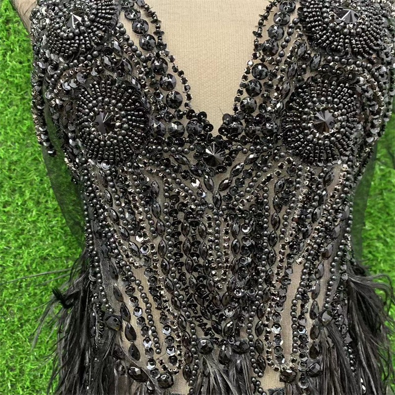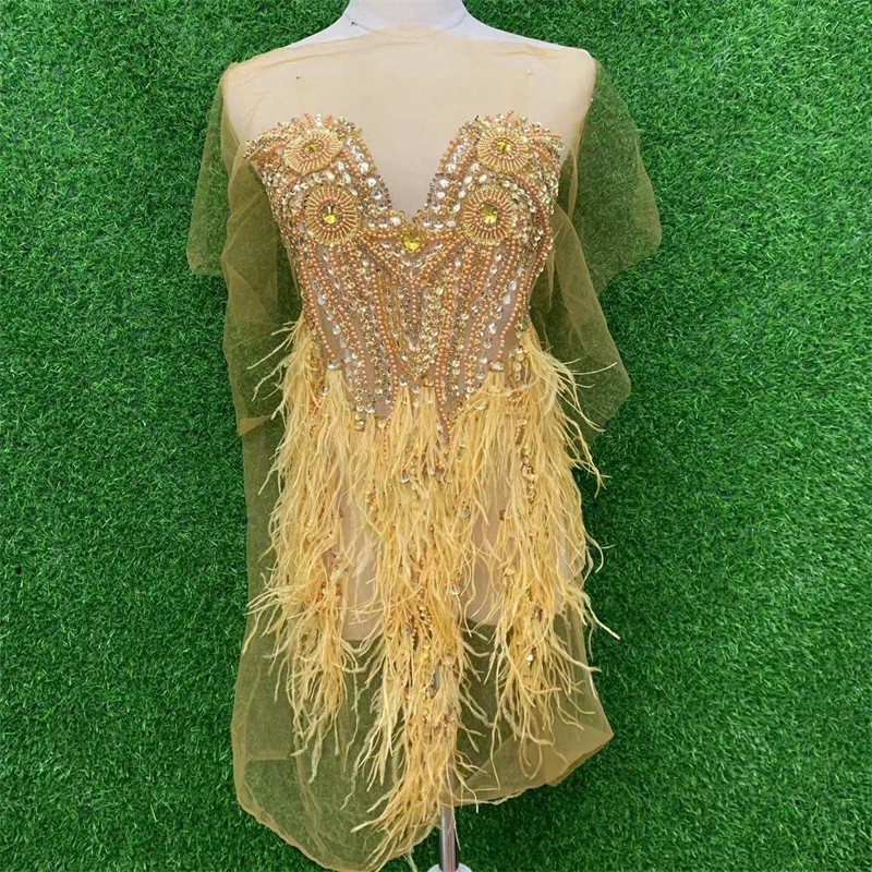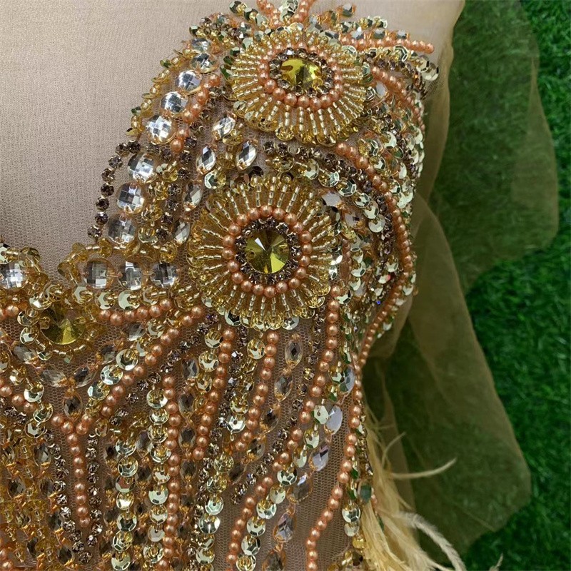 Feather New 56X100cm Deep V Wedding Dress Handmade Beaded Applique