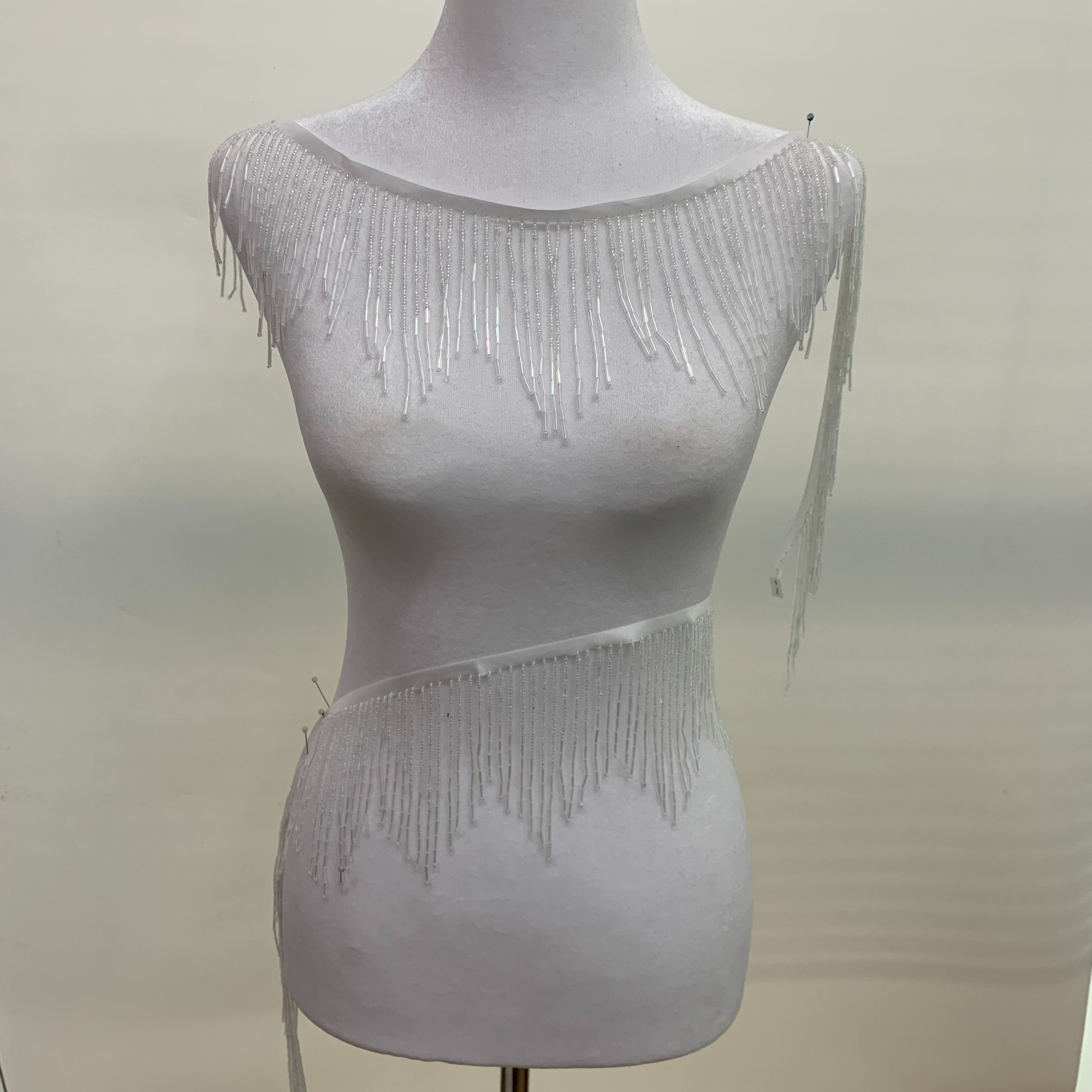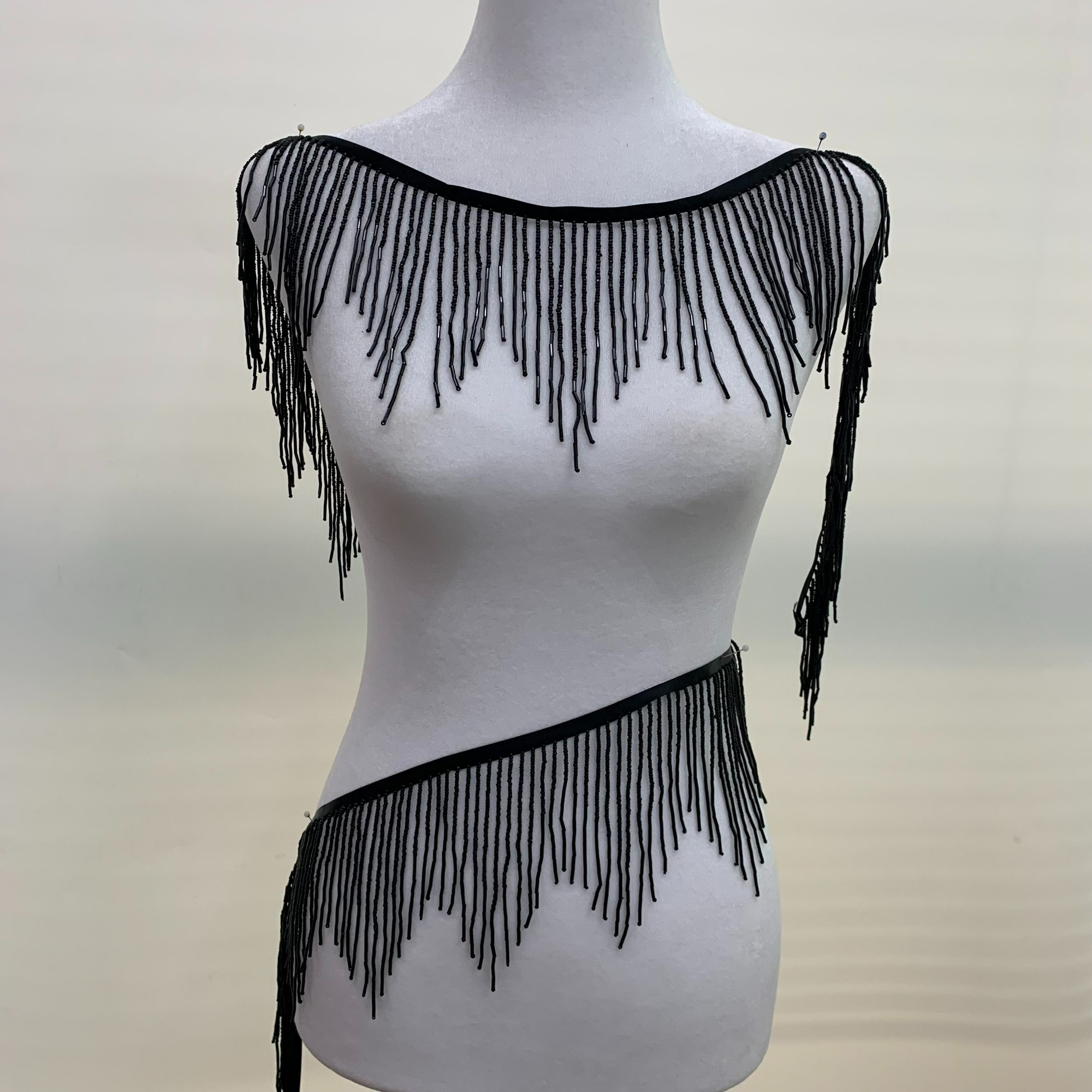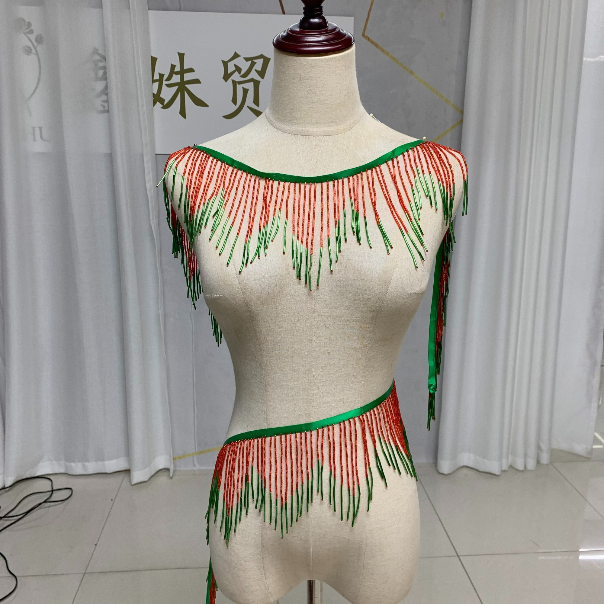 Glass tube dual color lace hanging beaded dance suit tassel beads clothing accessories