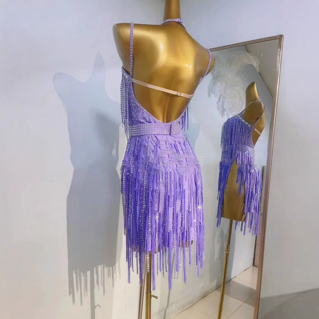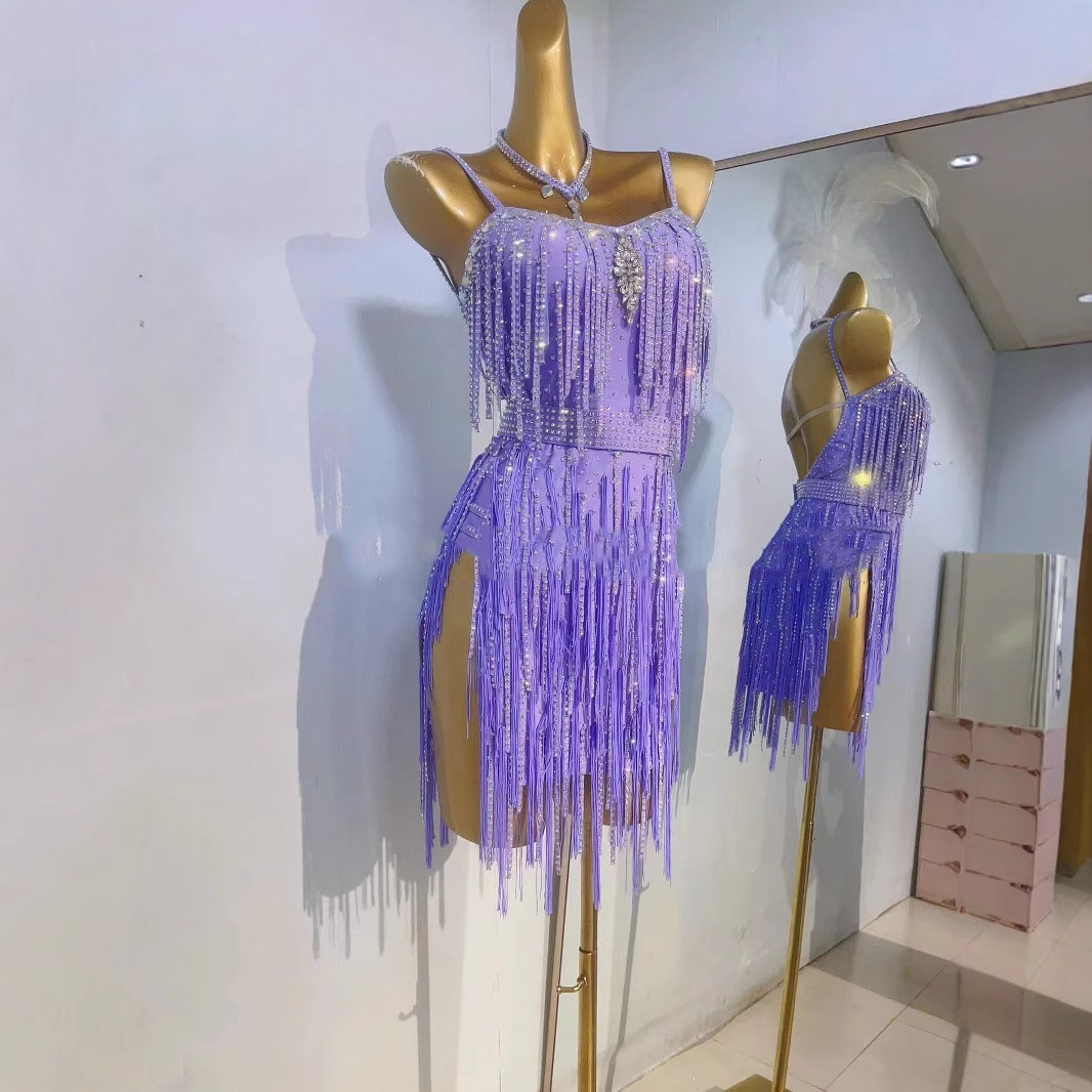 New Latin dance performance costumes tassel rhinestone sling art exam competition dress professional dance stage flower dress
