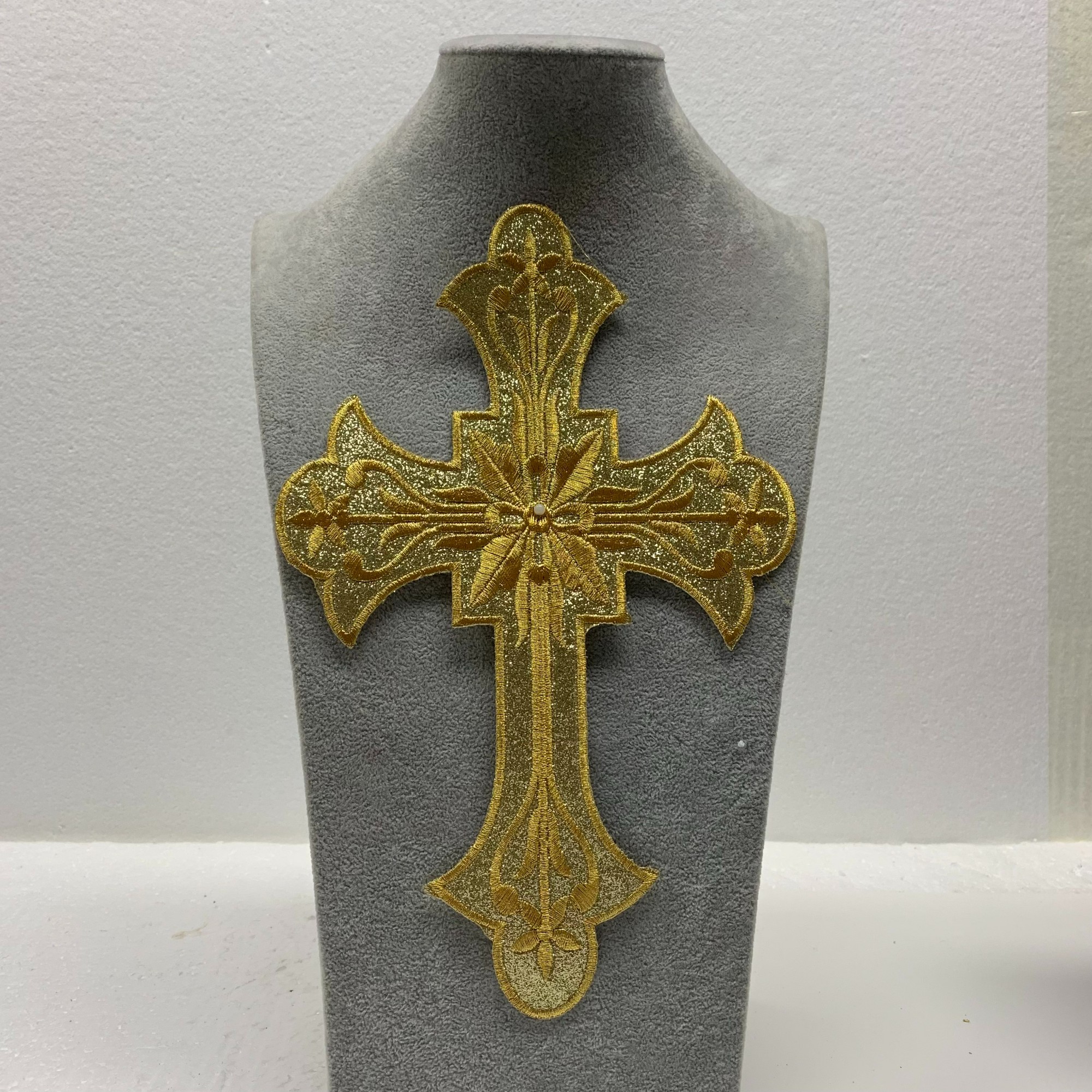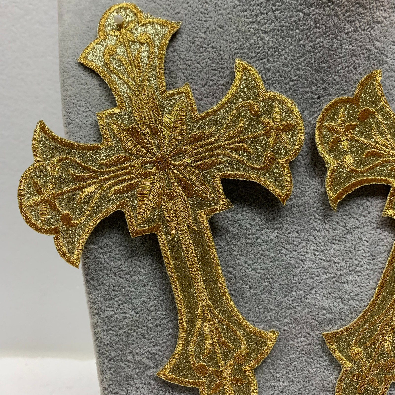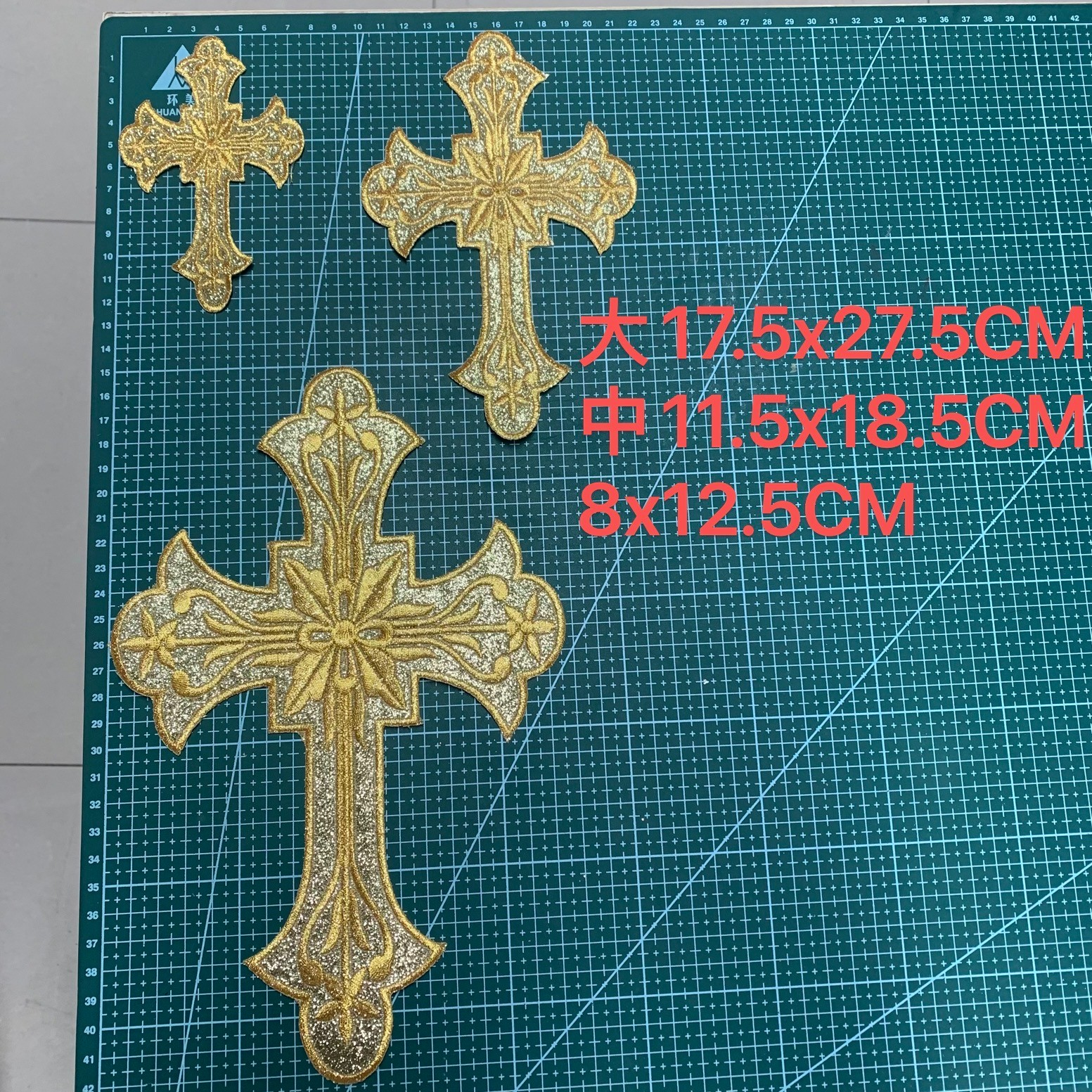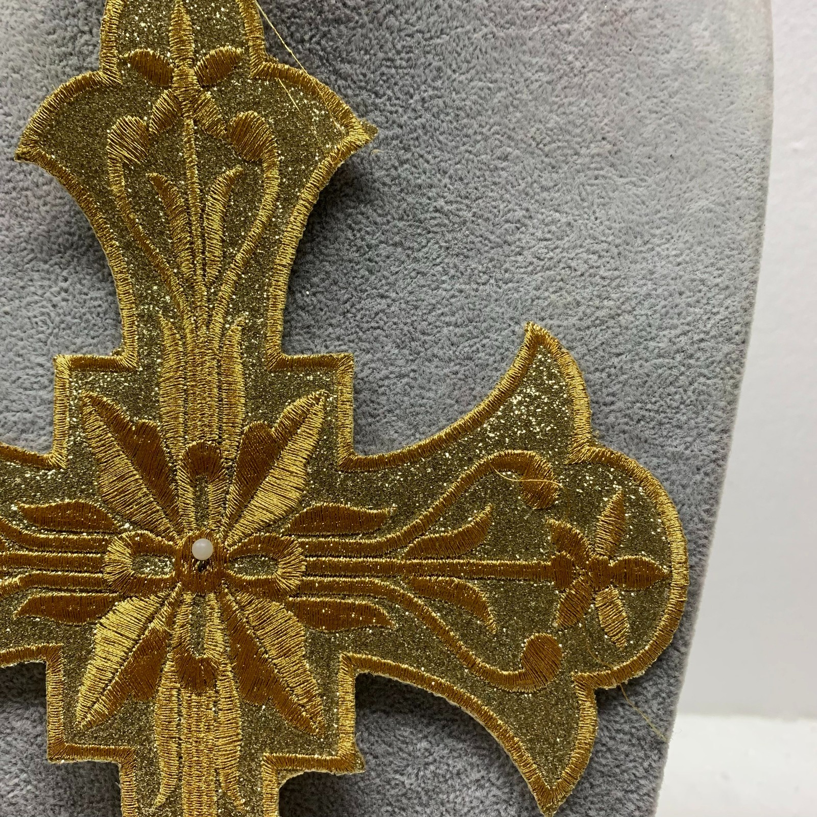 New Gold Adhesive Embroidered Patch Cross Sequins