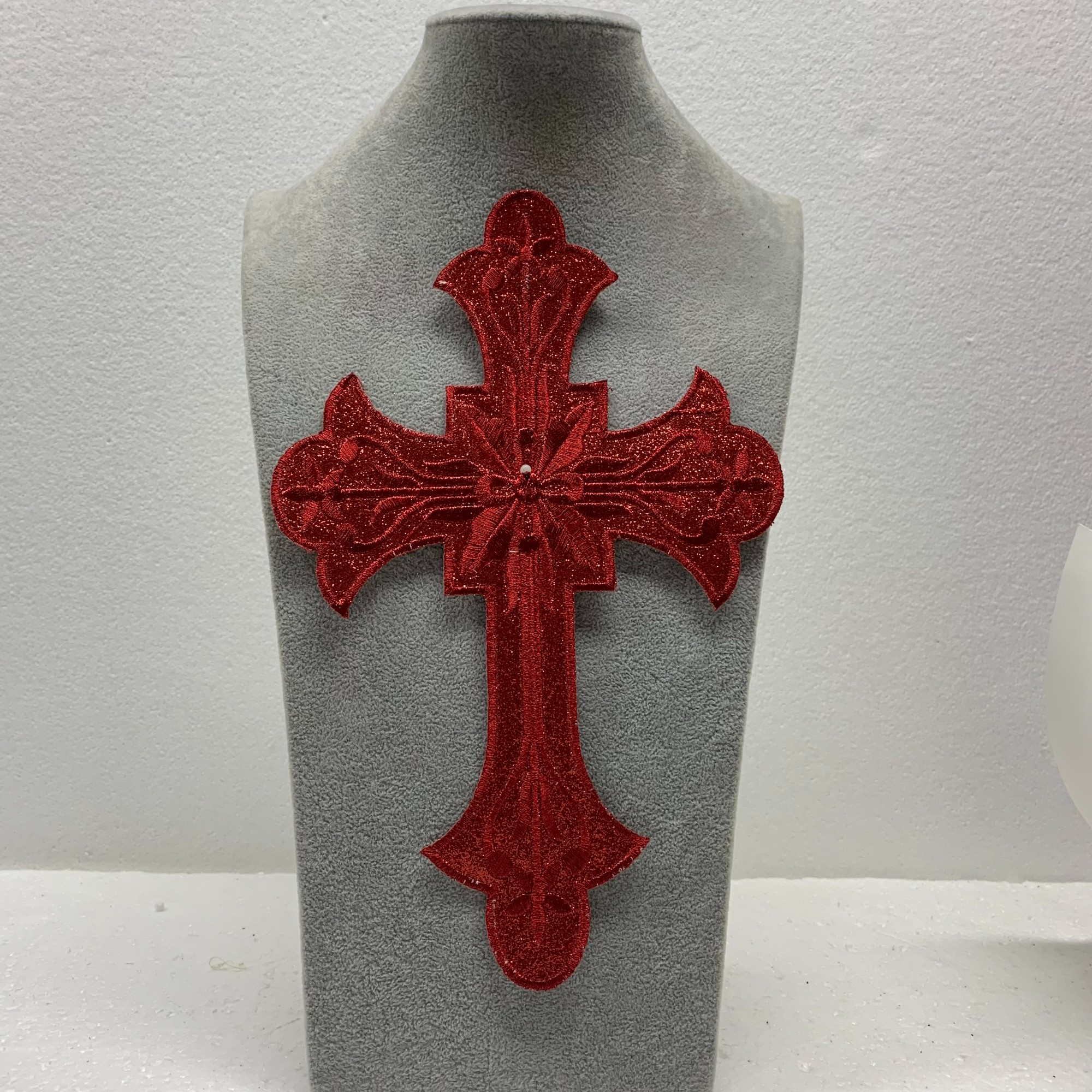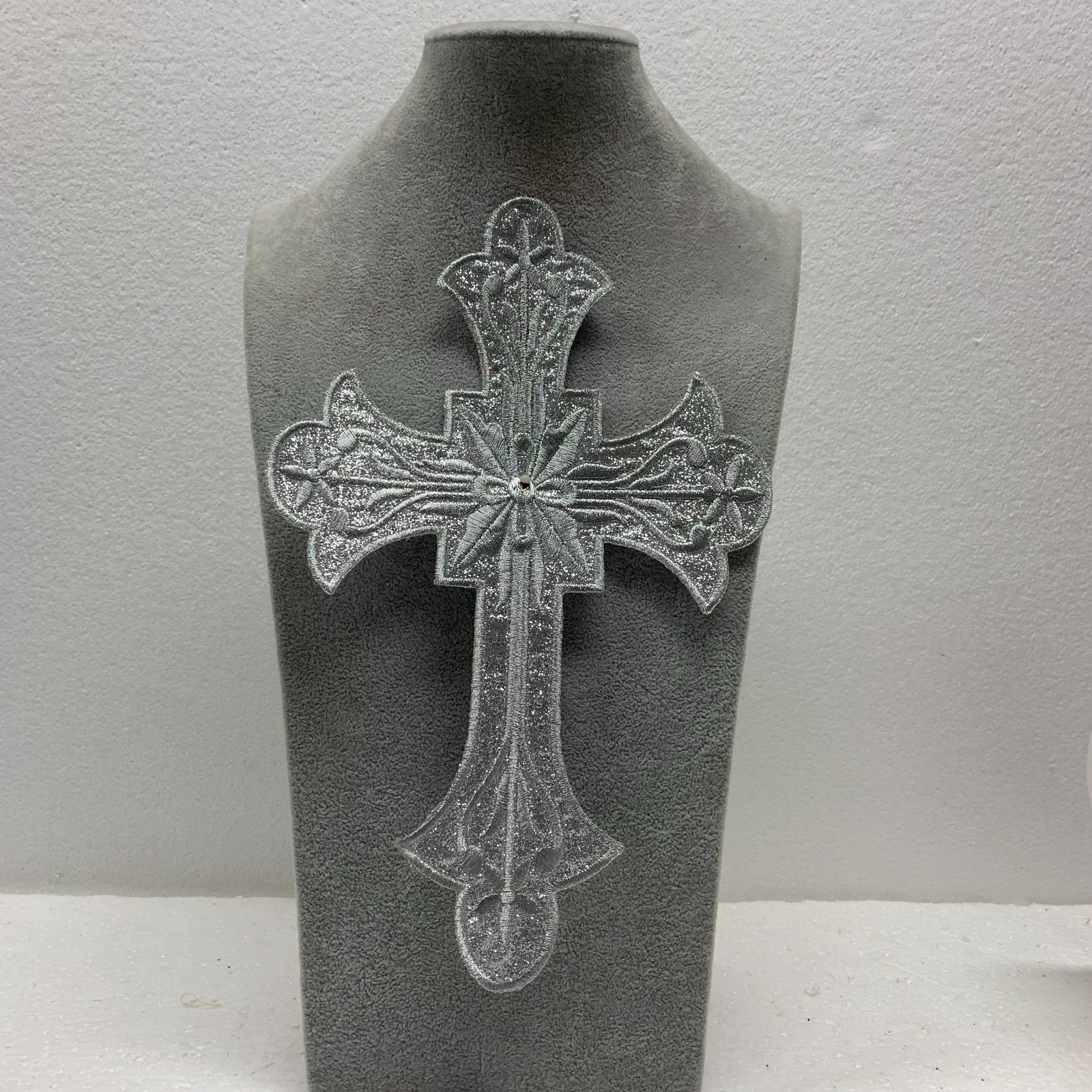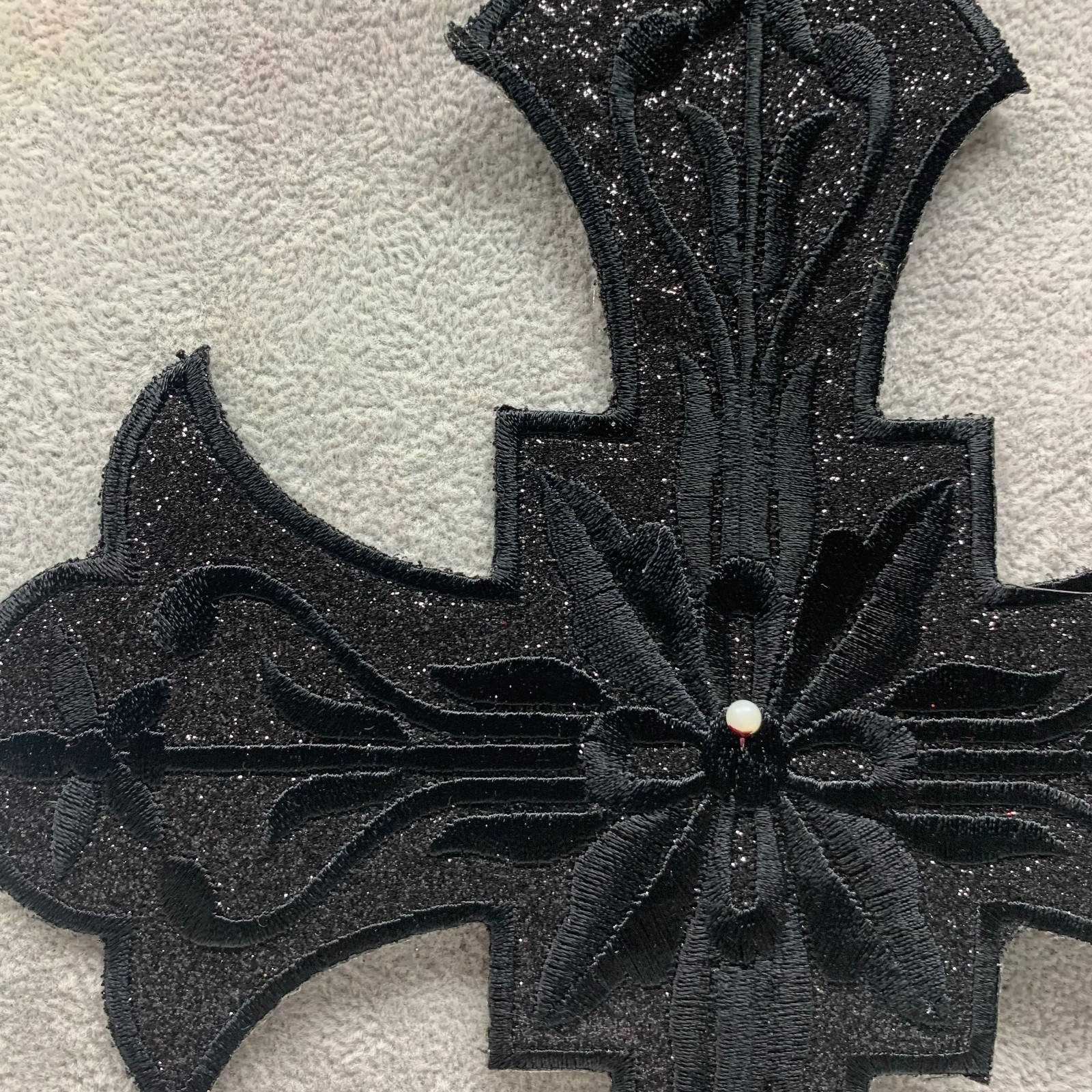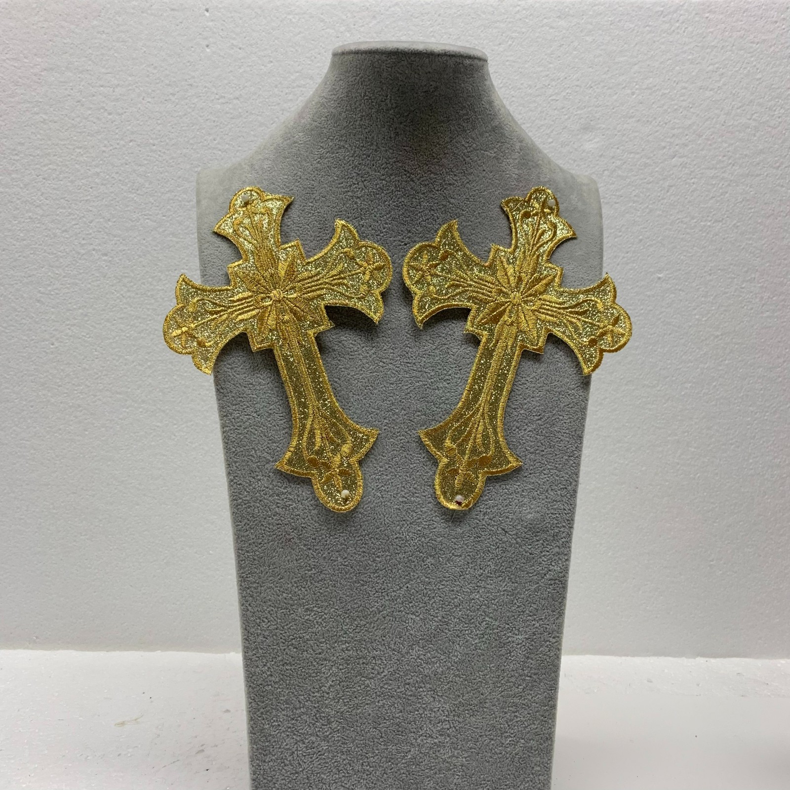 New Gold Adhesive Embroidered Patch Cross Sequins