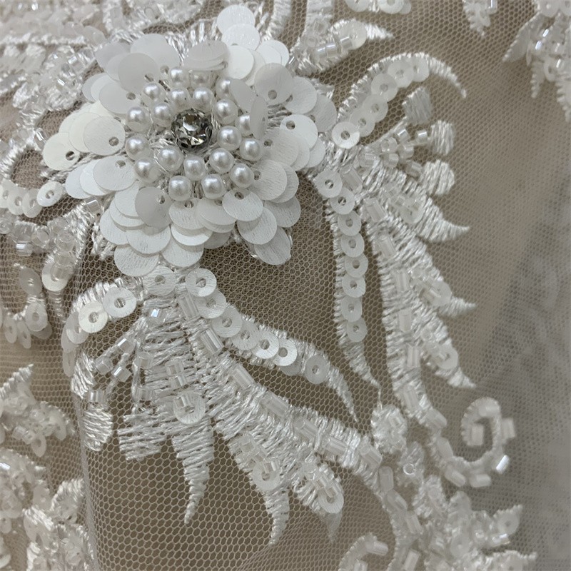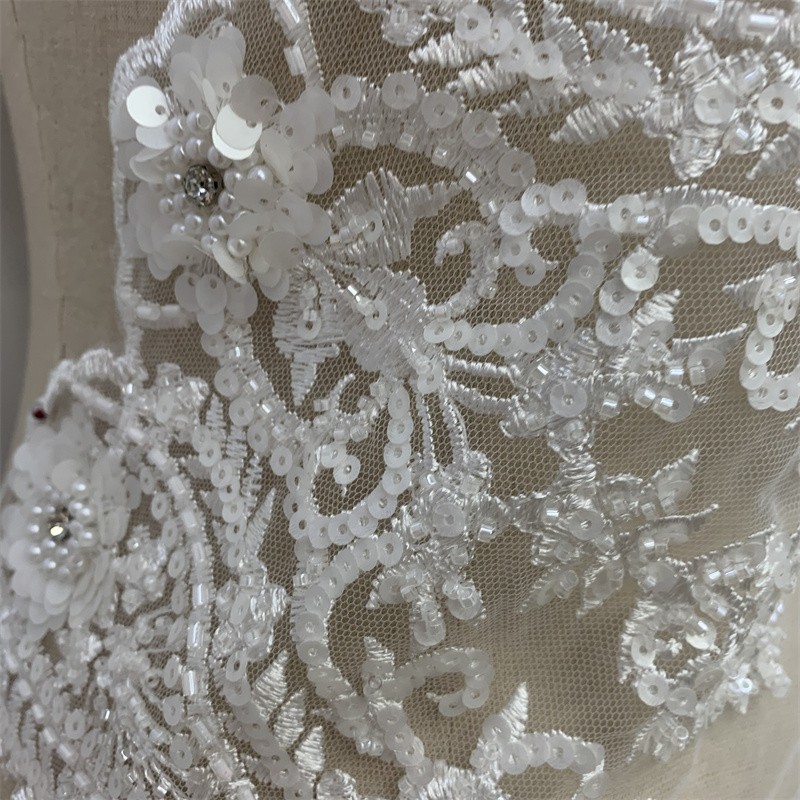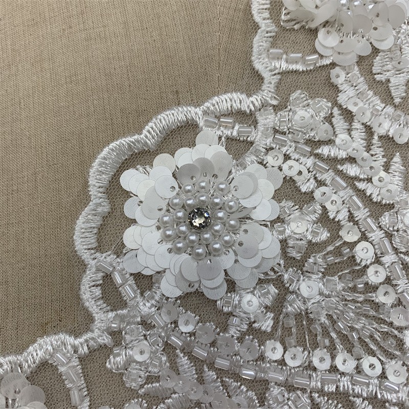 Wedding Embroidery Sequins Beaded Lace Barcode Wedding Dress Accessories